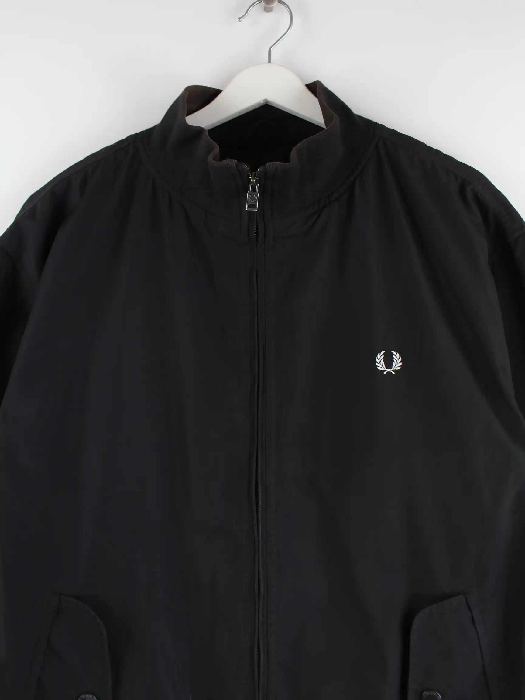 Leichte Jacke von Fred Perry in Größe XL. Sie ist aus Synthetik angefertigt und in Schwarz auf Lager.