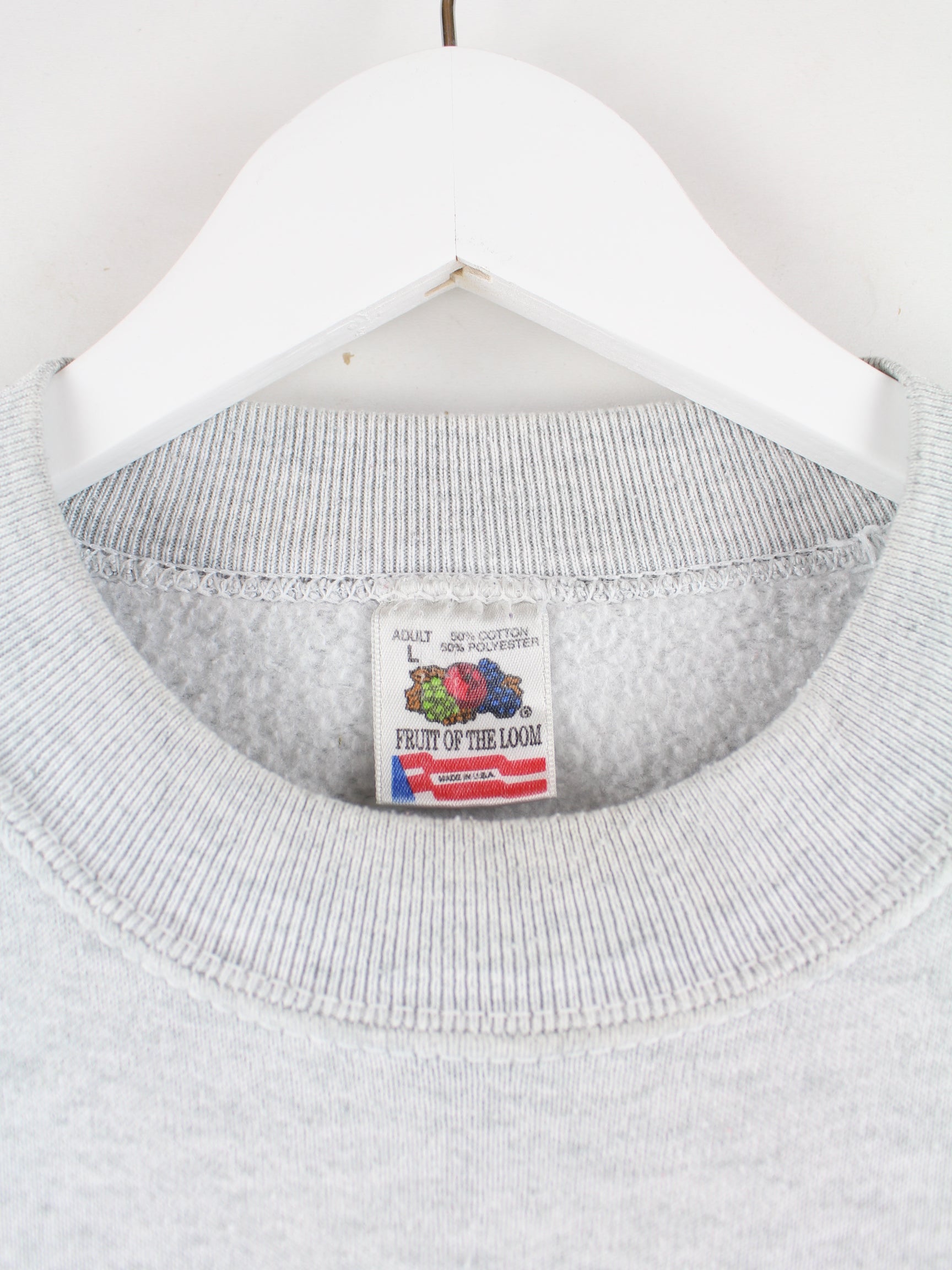 Grauer Sweater vom Label Fruit of the Loom aus den 90'ern in Größe L. Er ist aus einer Baumwollmischung gemacht und in gutem Zustand im Angebot.