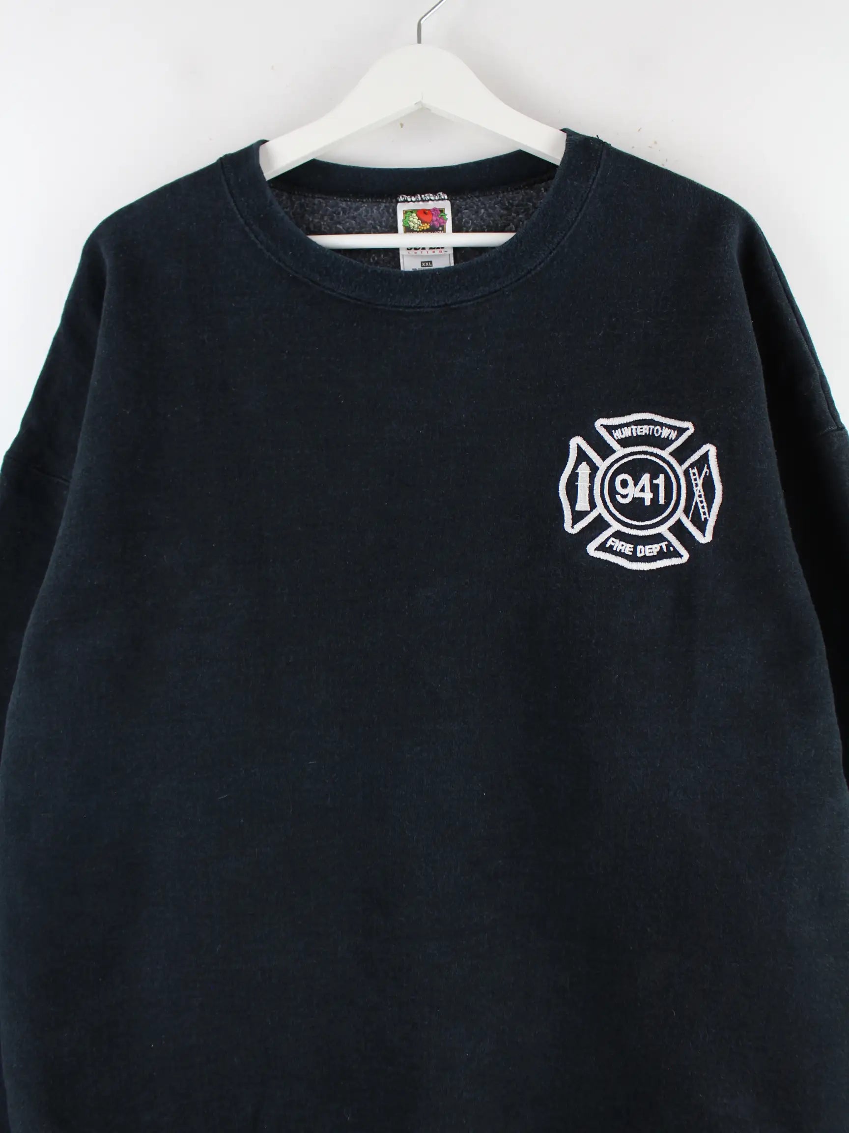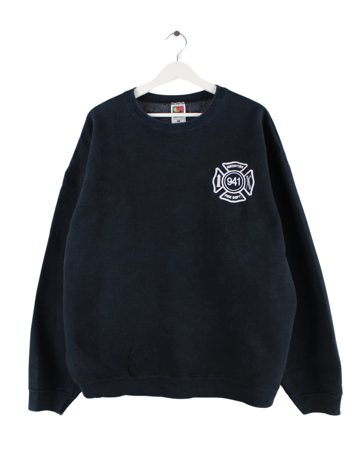 Fruit of the Loom 90s Vintage Fire Department Heavy Sweater Schwarz XXL