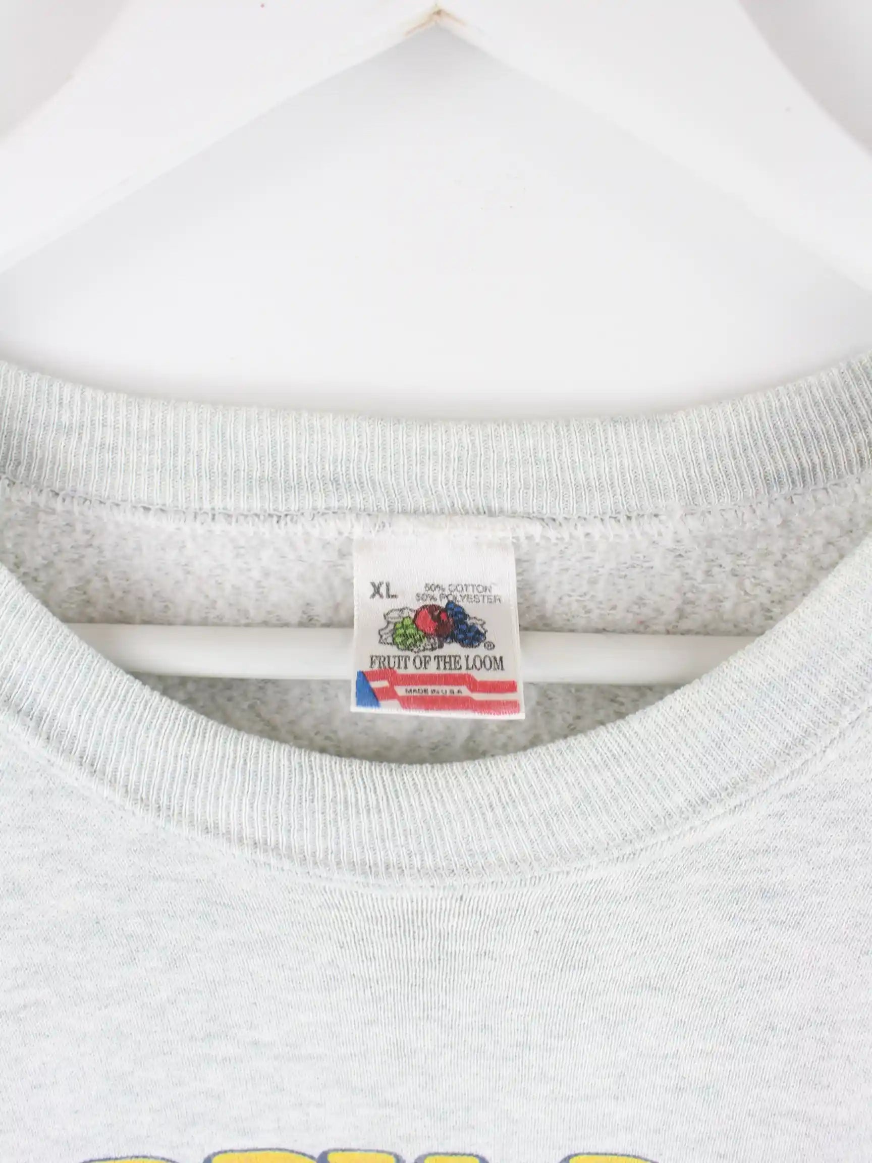Sweater der Brand Fruit of the Loom in Größe XL aus den 90'ern. Er ist aus einer Baumwollmischung und in Grau zu bekommen. Mit seltenem Beach Print.