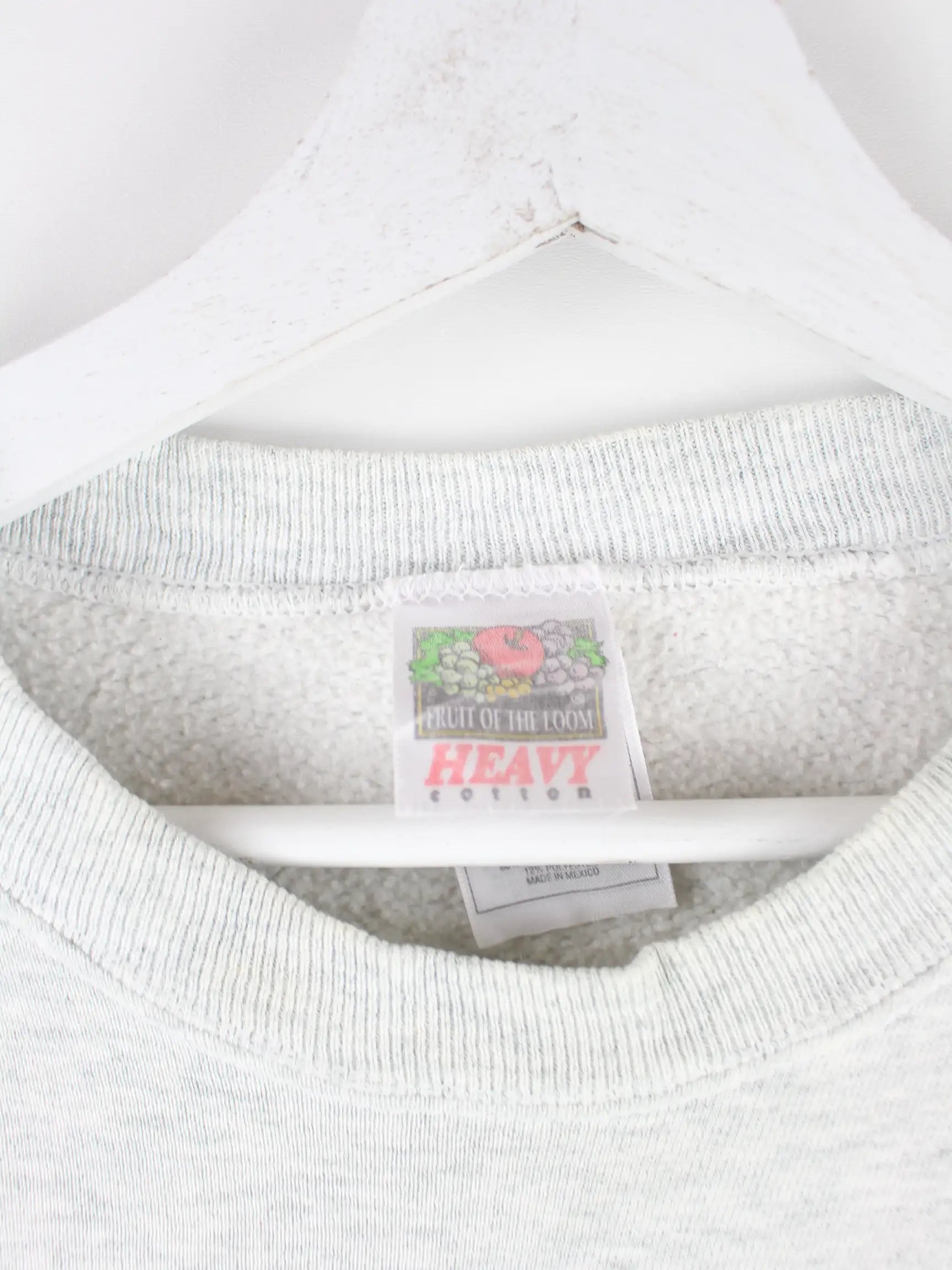 Grauer Sweater vom Label Fruit of the Loom aus den 90'ern in Größe XL. Er ist aus einer Baumwollmischung produziert und in gutem Zustand zu bekommen. Mit seltenem Shore Print.