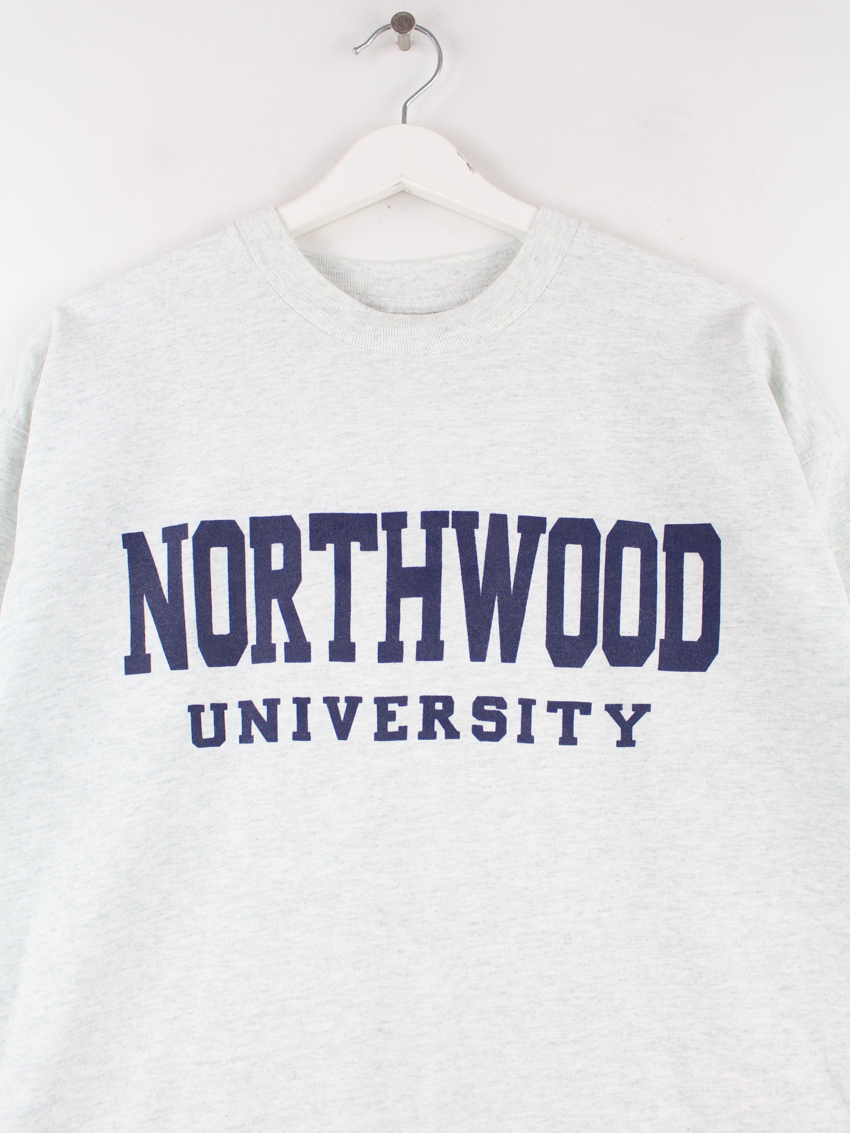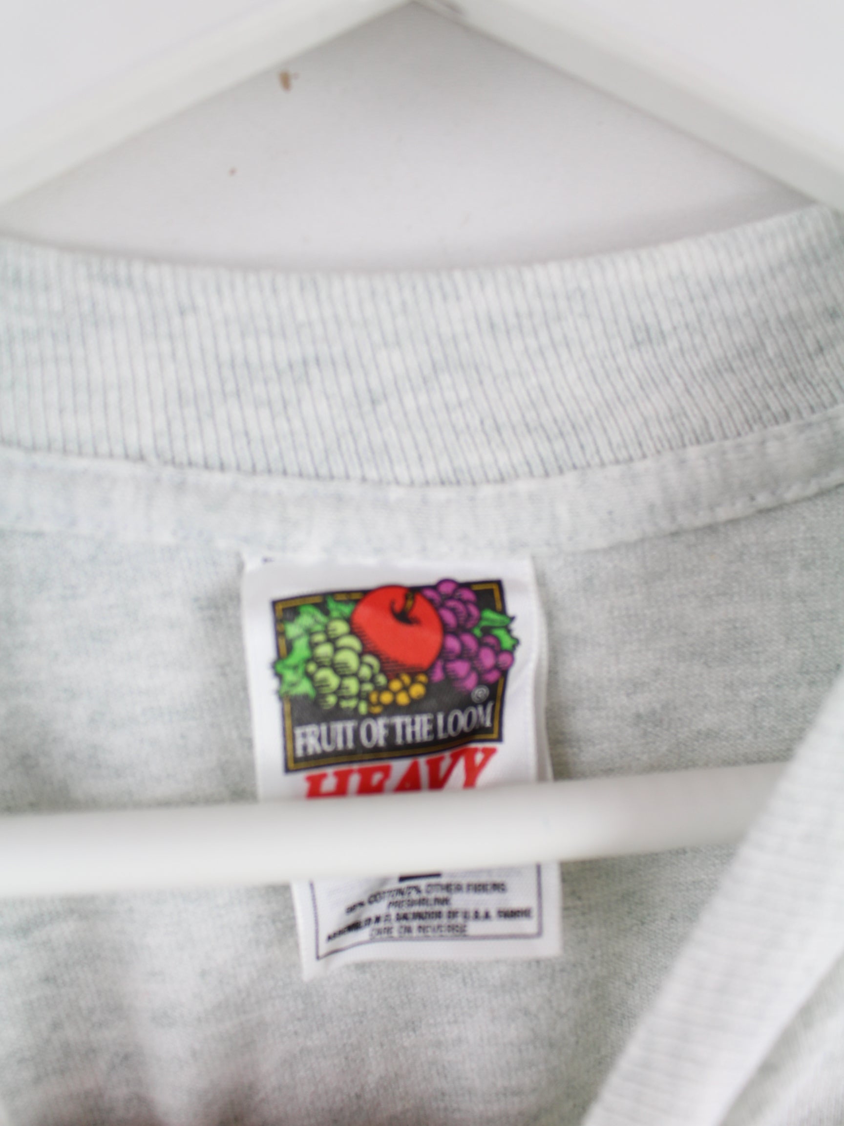 Grey T-shirt from the brand Fruit of the Loom from the 90's in size XL. It is made from a cotton blend and in good condition. With a beautiful Northwood print.