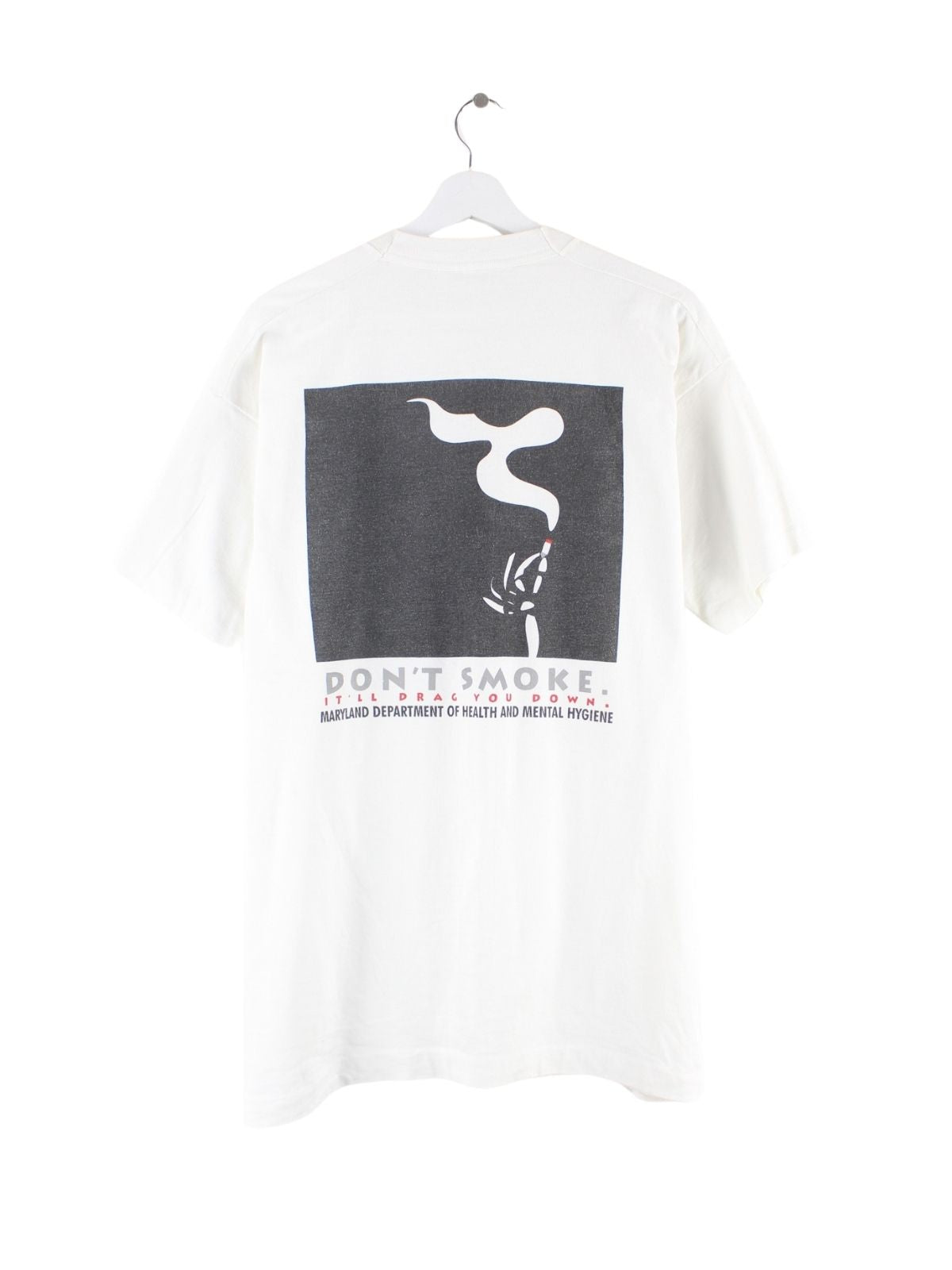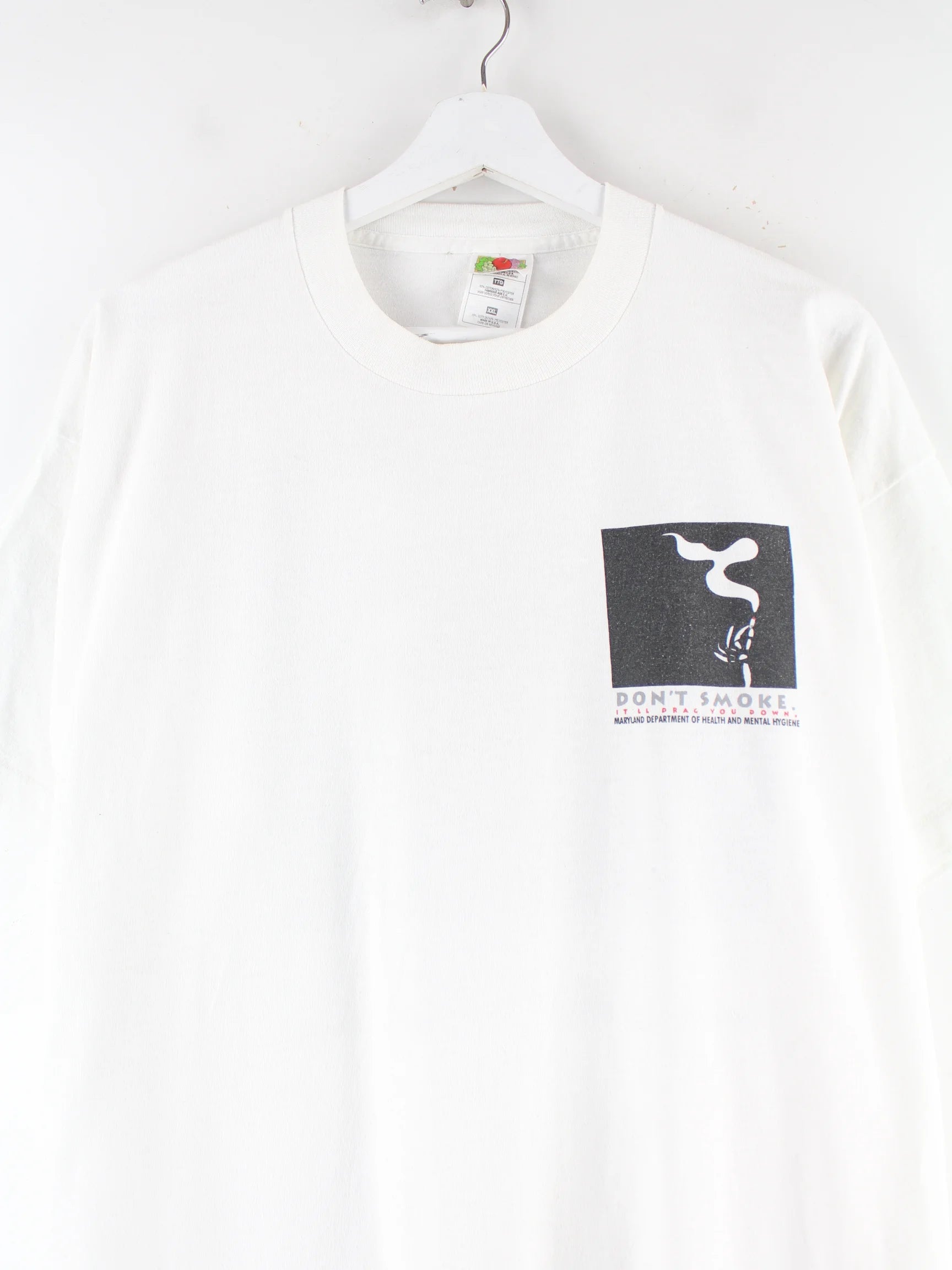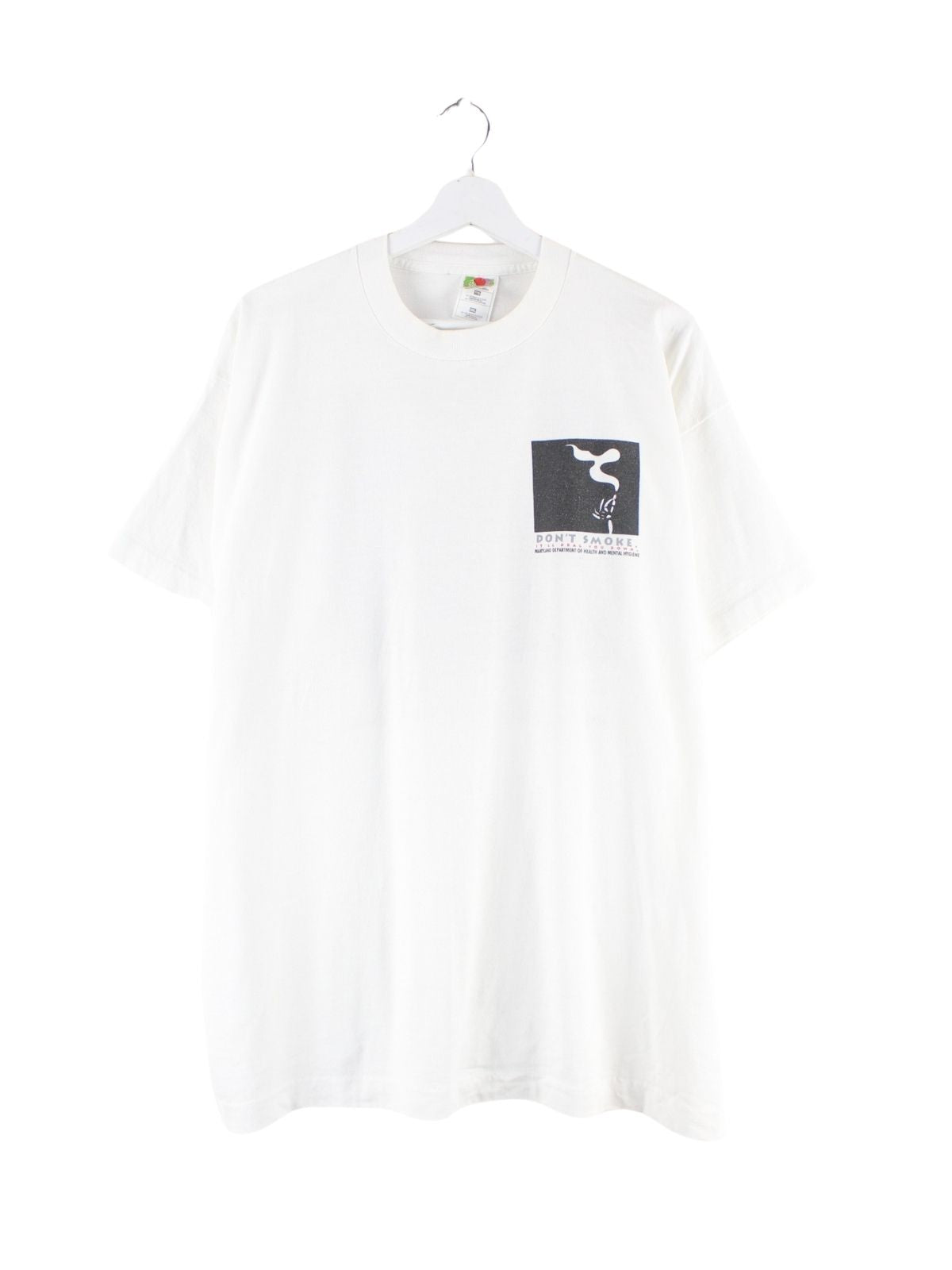 Fruit of the Loom 90s Vintage Smoke Free Print Single Stitch T-Shirt Weiß XXL
