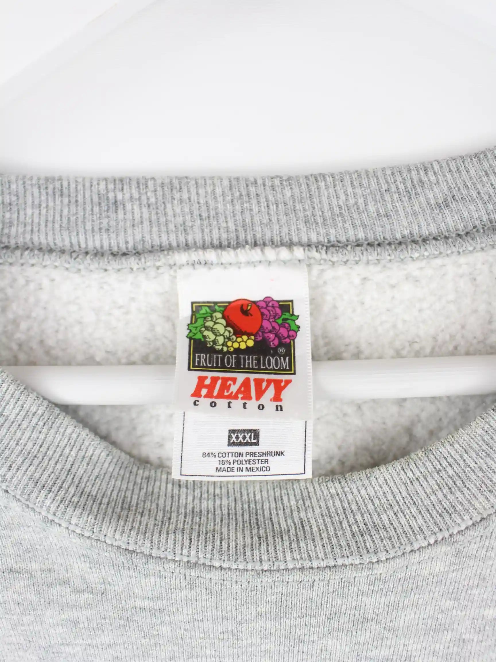 Sweater des Labels Fruit of the Loom in Größe 3XL aus den 90'ern. Er ist aus einer Baumwollmischung gefertigt und in Grau in Stock. Mit schönem Raiders Print.