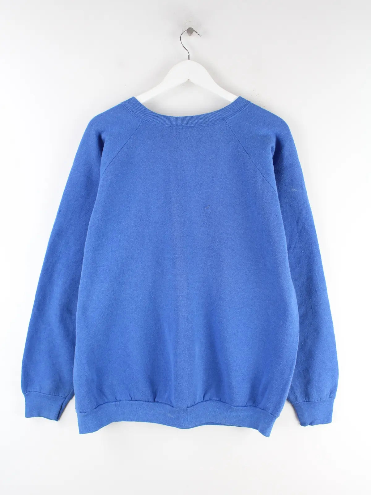 Sweater der Marke Fruit of the Loom in Größe XXL. Er ist aus einer Baumwollmischung angefertigt und in Blau im Angebot. Mit seltenem Football Print.