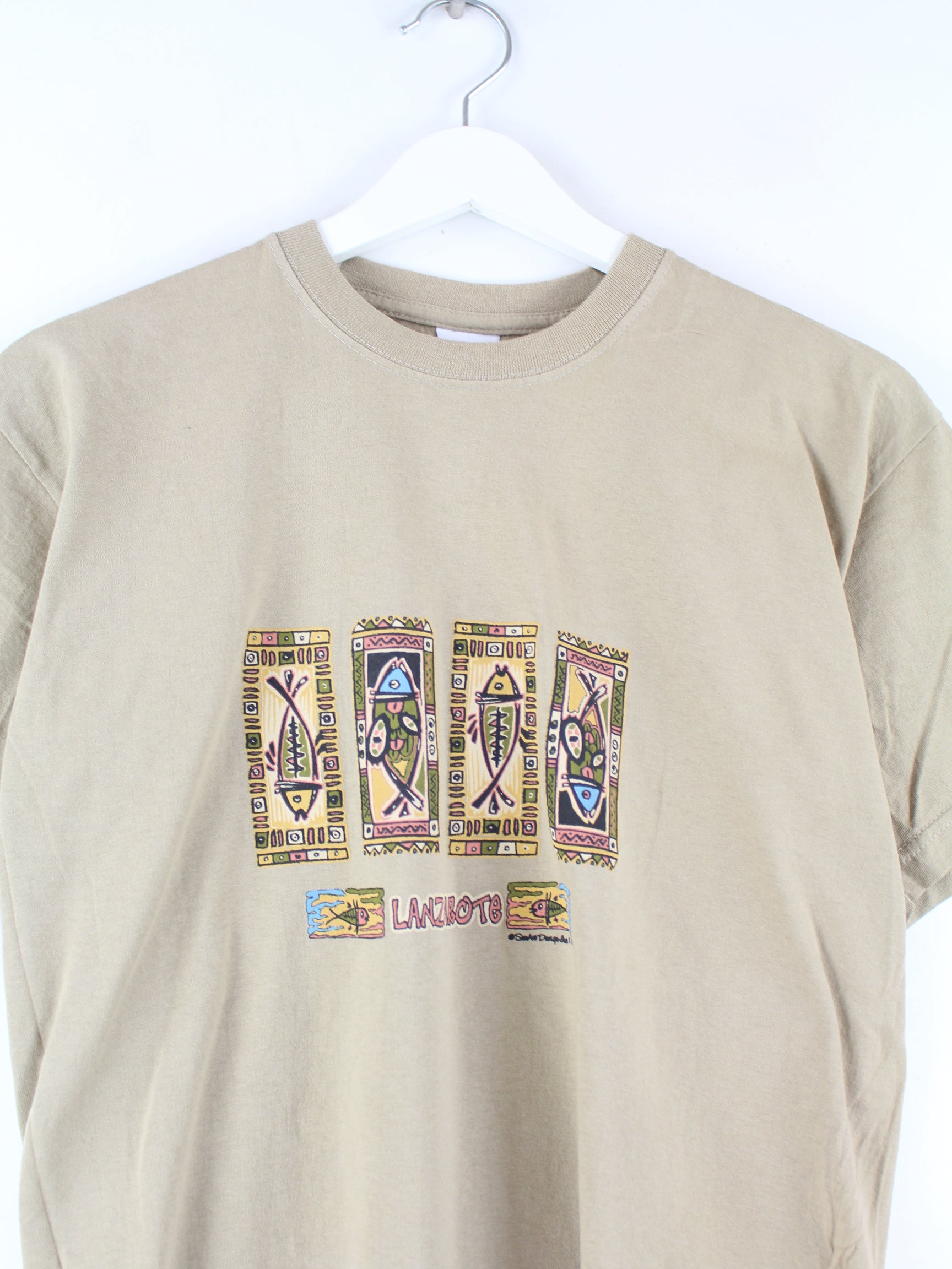 T-shirt from the brand Fruit of the Loom in size S. It is made of cotton and is available from us in brown. With a chic Lanzarote print.