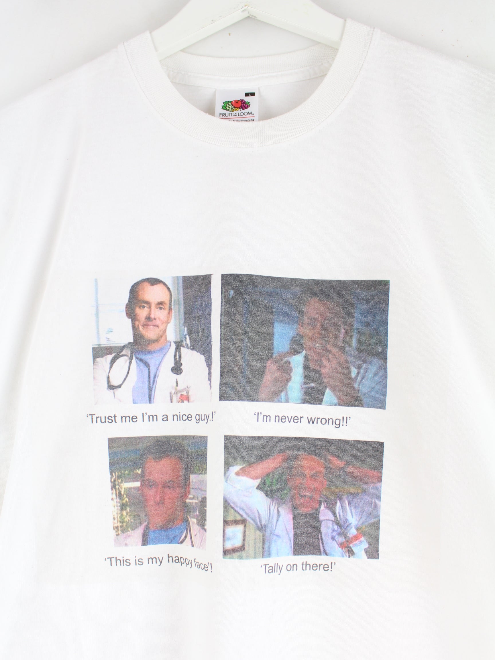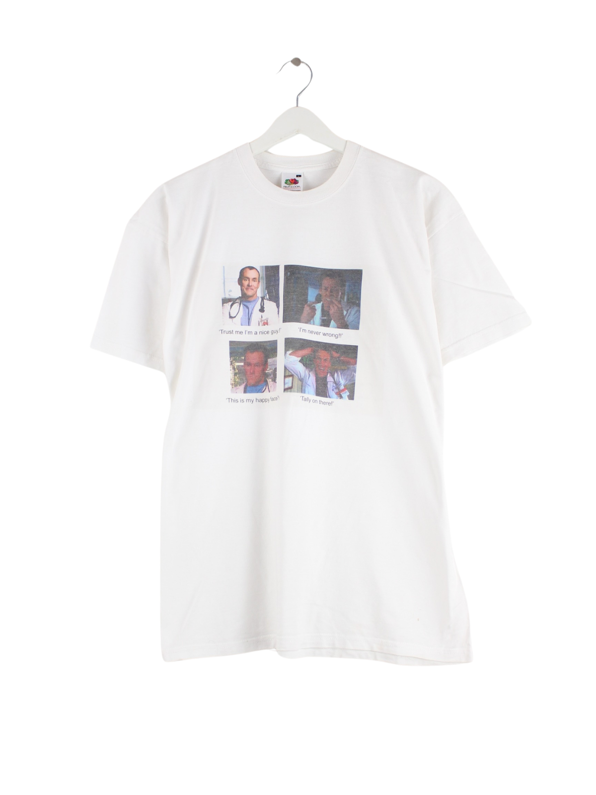White T-shirt from Fruit of the Loom in size L. It is made of cotton and is in good condition. With a rare Scrubs print.