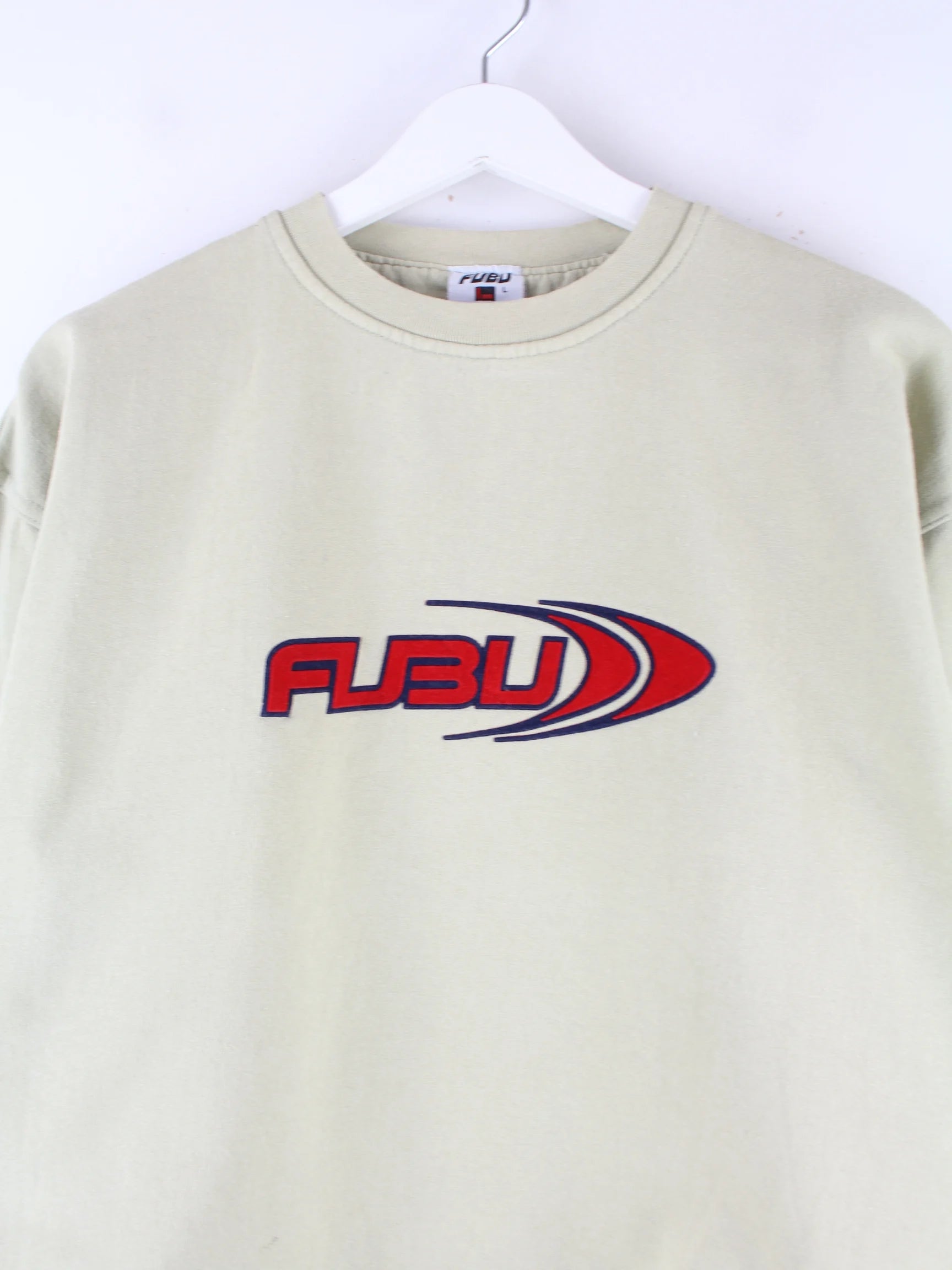 Sweater der Brand Fubu mit gesticktem Logo in Größe XS. Er ist aus einer Baumwollmischung produziert und in Grün in Stock.