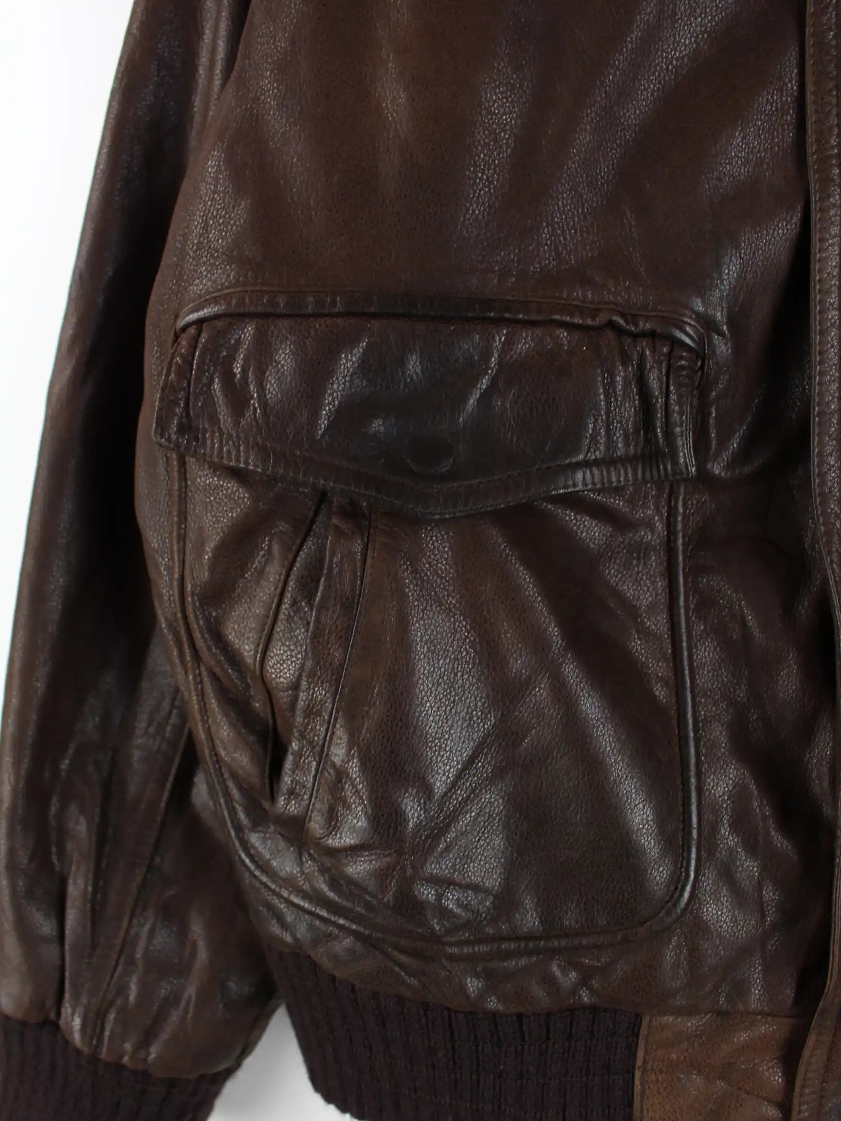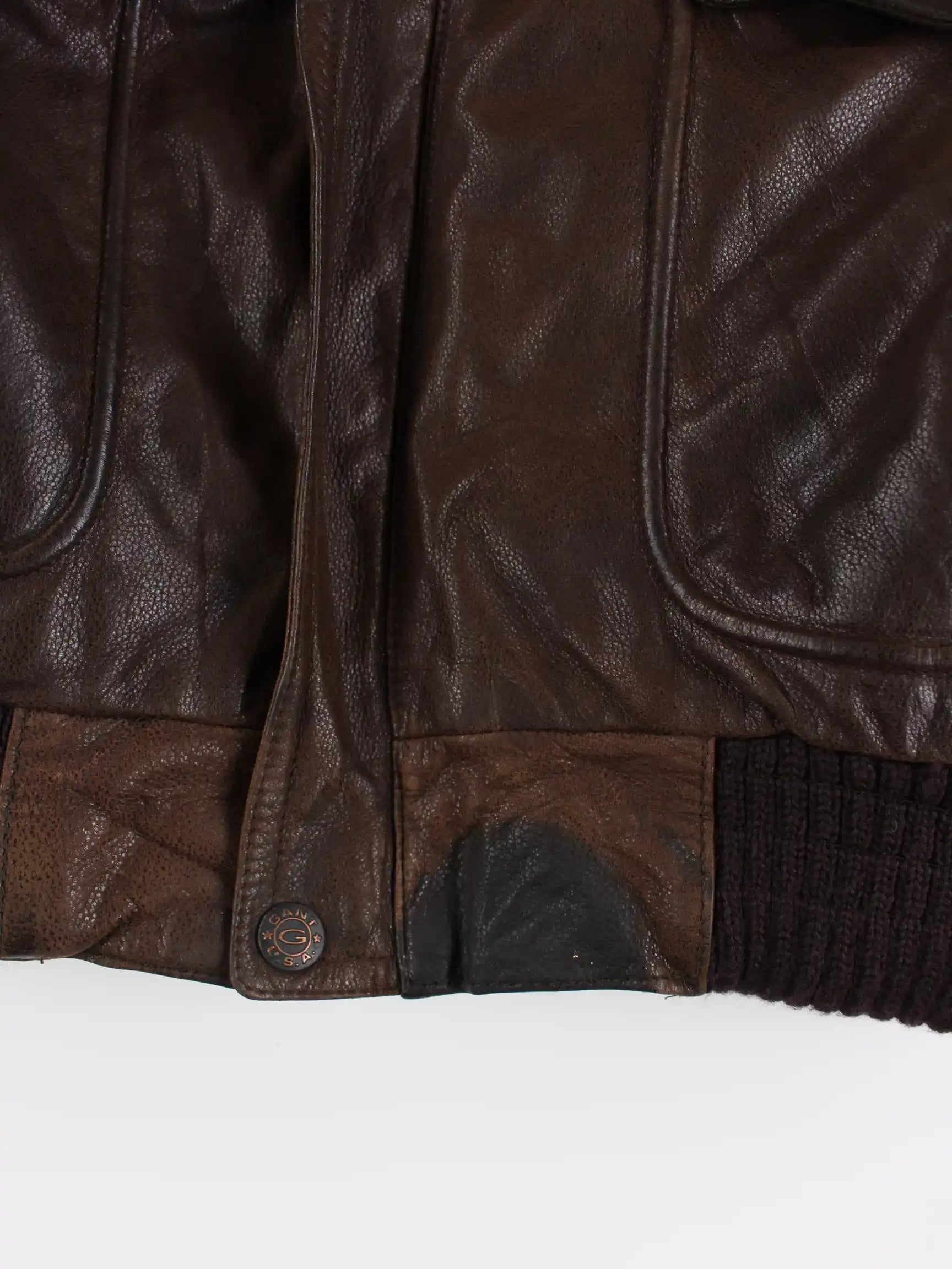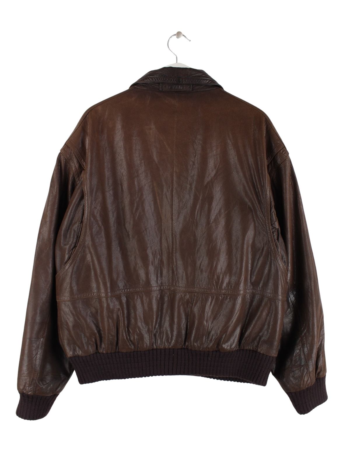 Braune Jacke von Gant aus den 90'ern in Größe L. Sie ist aus Leder gemacht und in gutem Zustand bei uns zu bekommen.