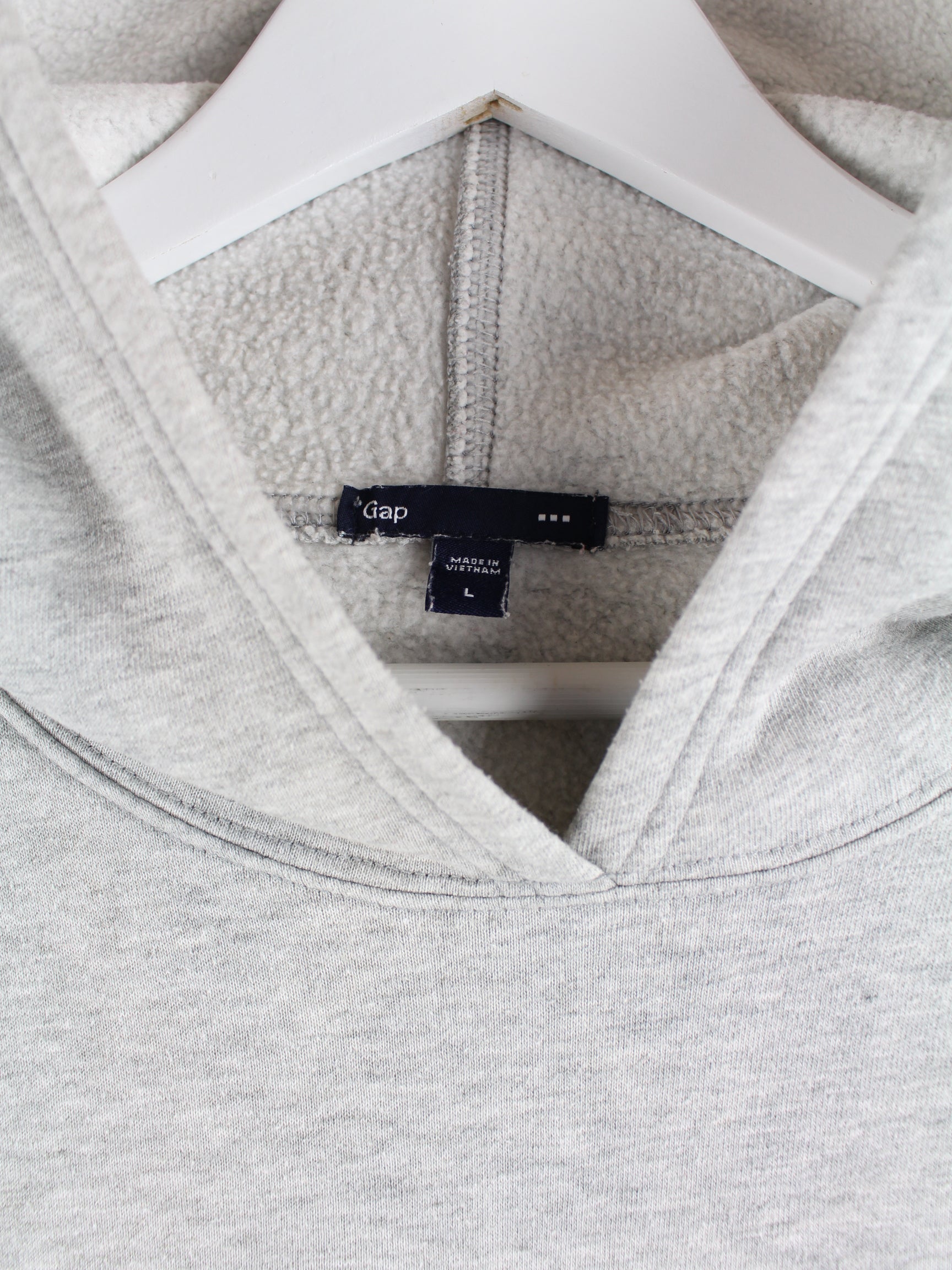 Hoodie der Marke GAP mit gesticktem Logo in Größe L. Er ist aus einer Baumwollmischung produziert und in Grau zu bekommen.