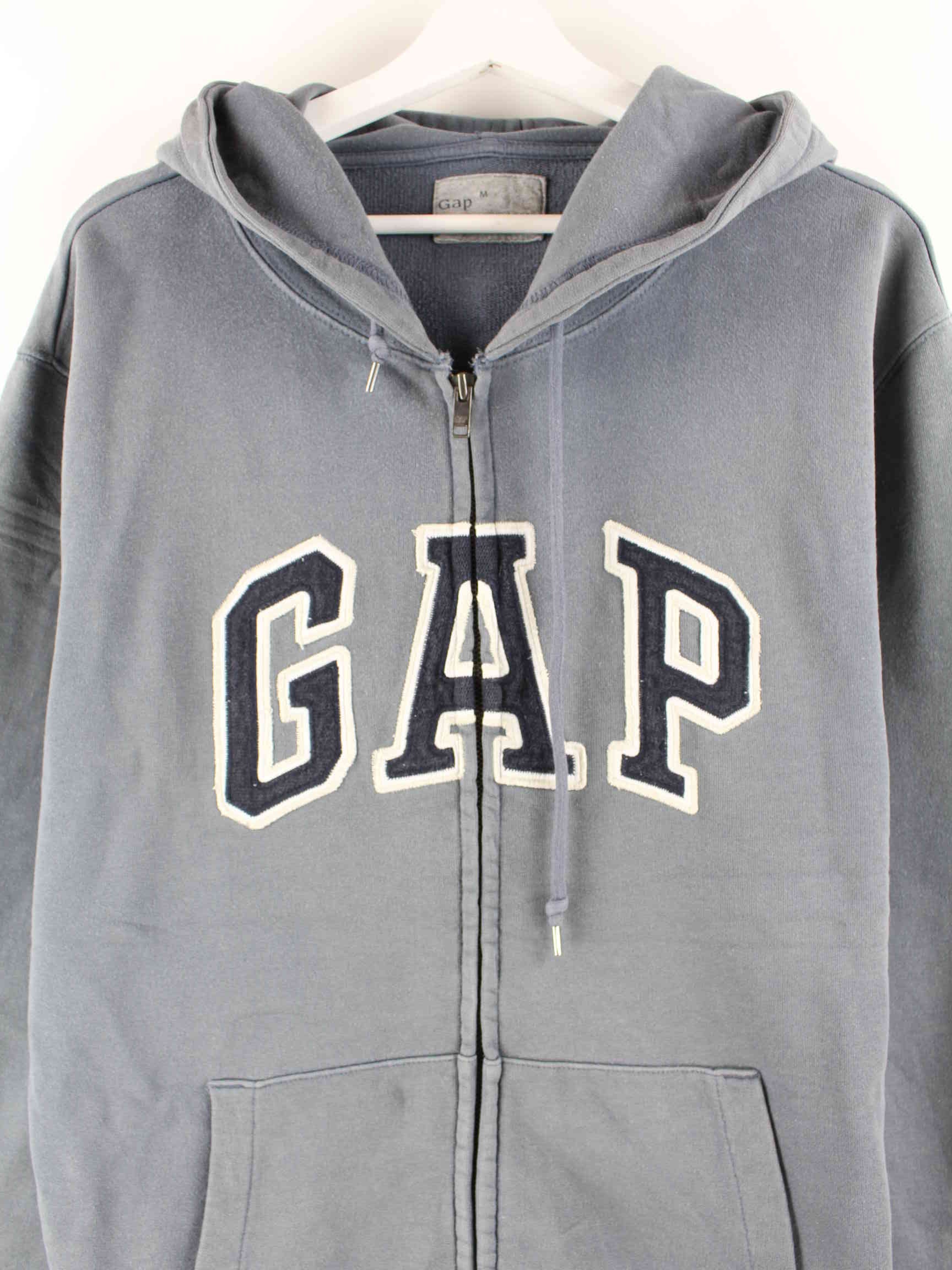 Hoodie from the GAP brand with a zip in size L. It is made from a cotton blend and is available in blue.