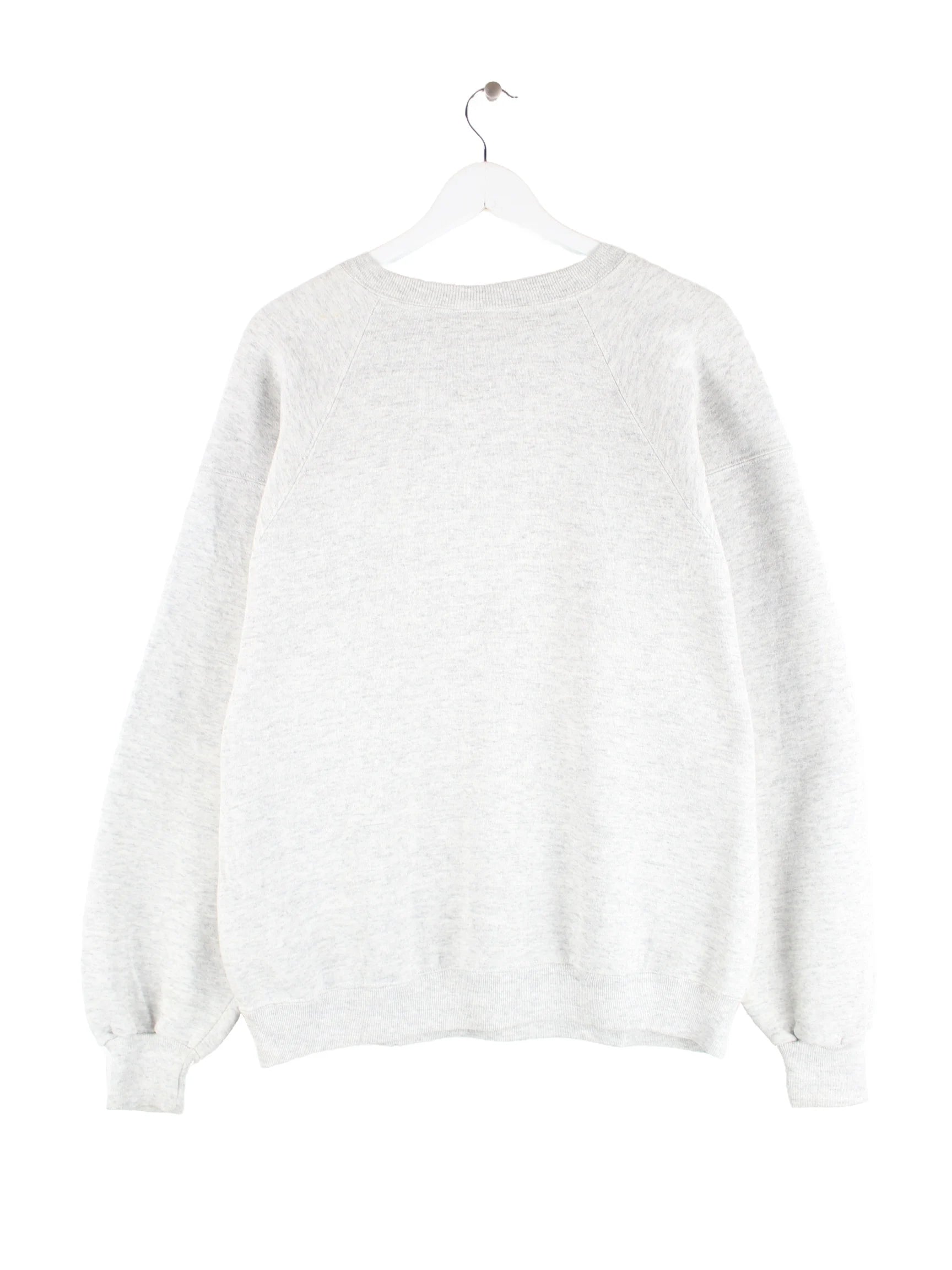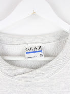 Grauer Sweater vom Label Gear for Sports aus den 90'ern in Größe XL. Er ist aus einer Baumwollmischung und in sehr gutem Zustand bei uns vorrätig. Mit seltenem University Print.