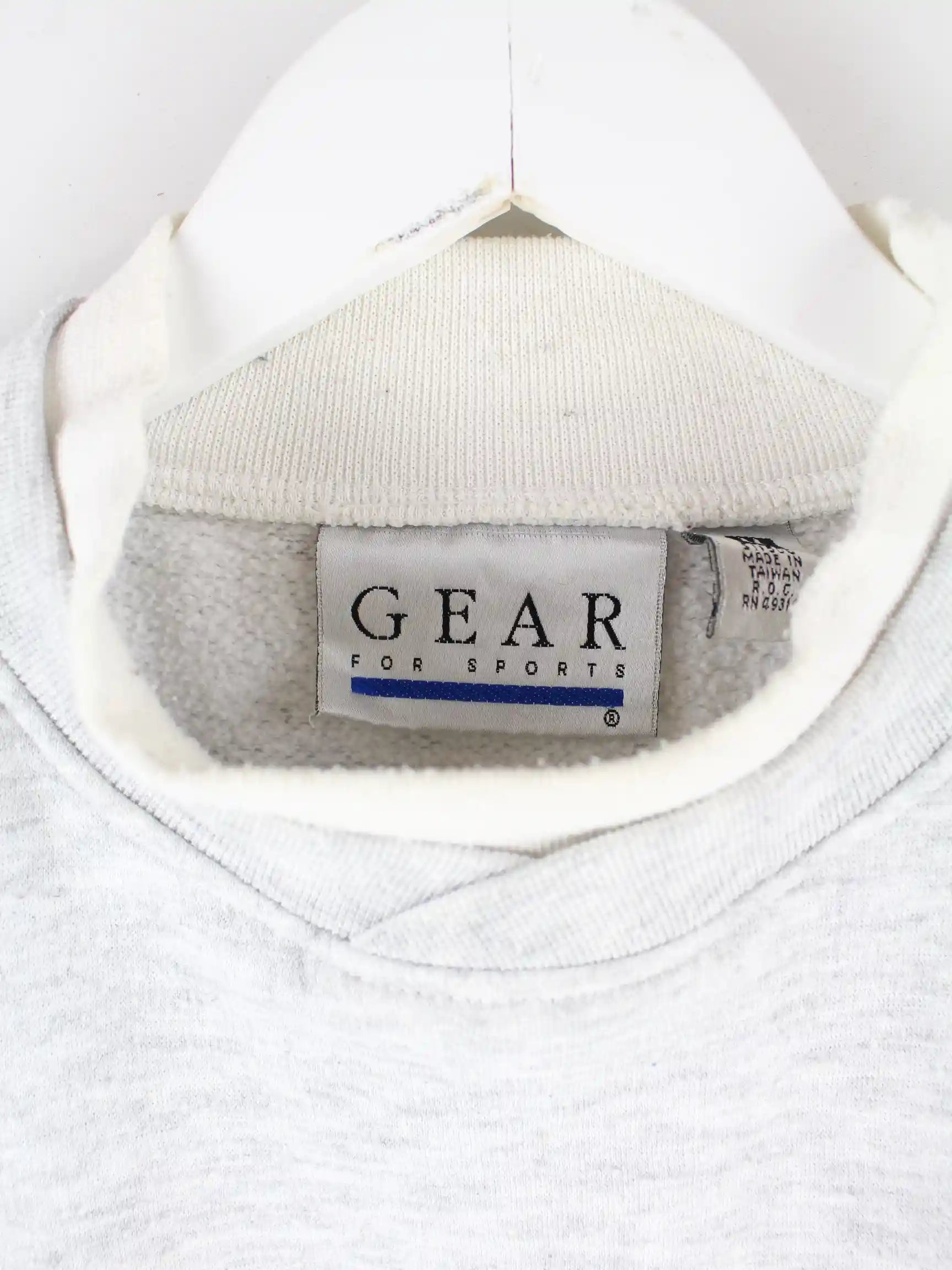 Grauer Sweater vom Brand Gear for Sports aus den 90'ern in Größe M. Er ist aus einer Baumwollmischung produziert und in gutem Zustand zu bekommen. Mit seltenem Candlestone Print.