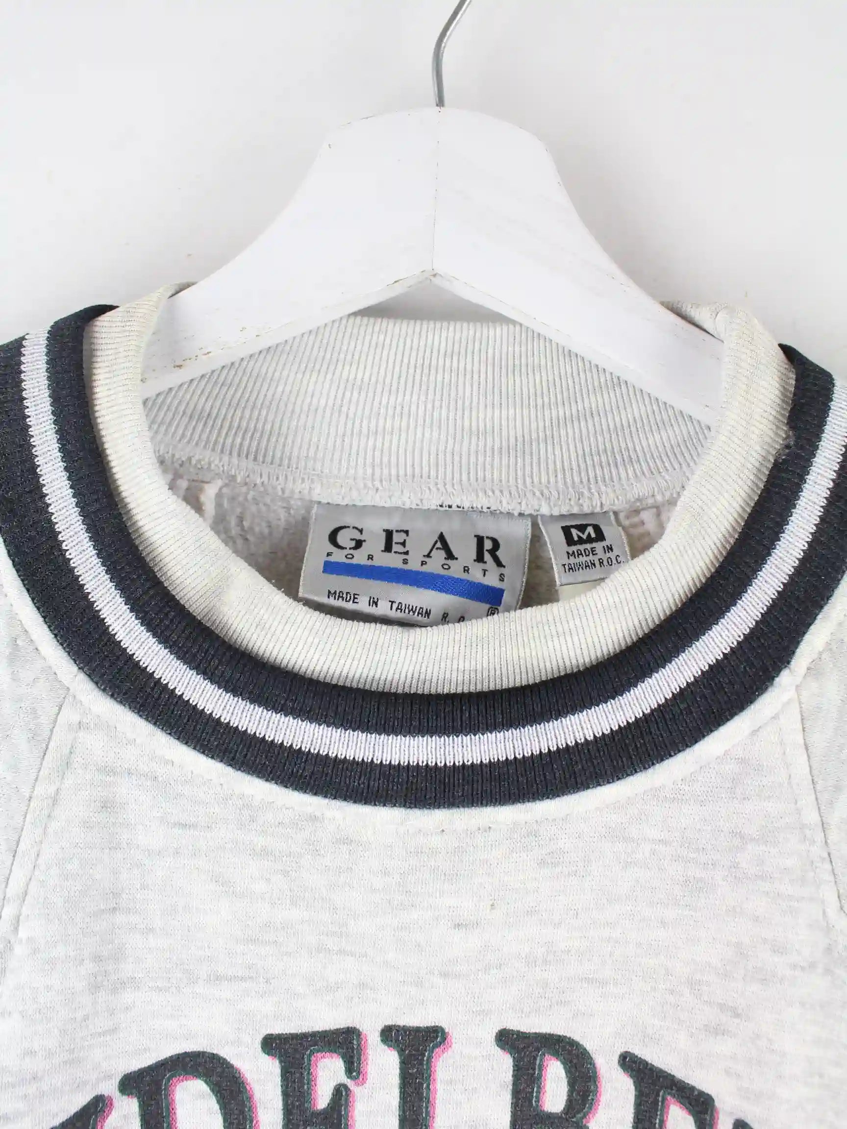 Grauer Sweater vom Label Gear for Sports aus den 90'ern in Größe M. Er ist aus einer Baumwollmischung gemacht. Den Zustand würden wir als 'In Ordnung' bezeichnen (vergl. Bilder).