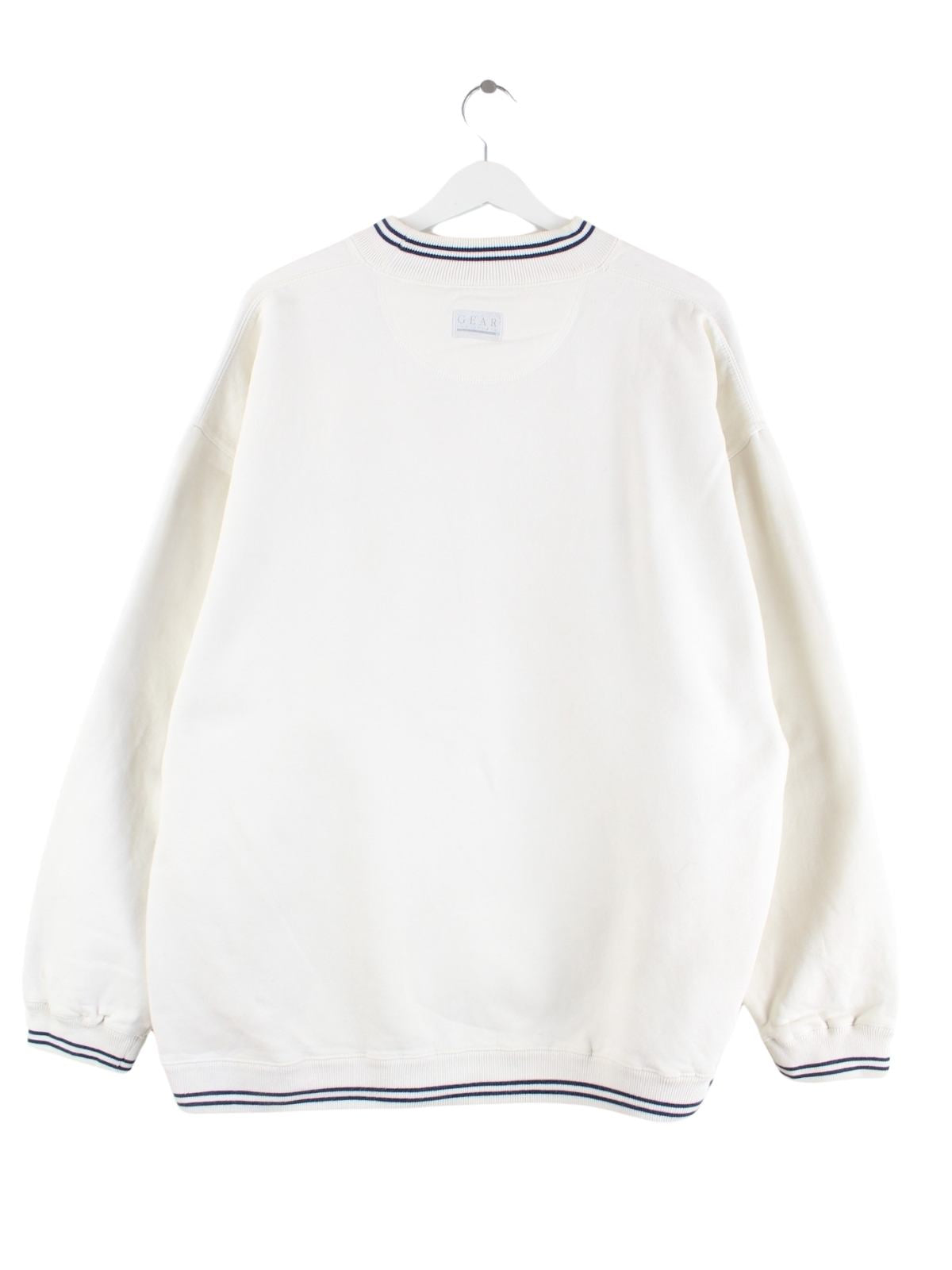 Sweater aus dem Hause Gear for Sports in Größe XXL aus den 90'ern. Er ist aus einer Baumwollmischung hergestellt und in Weiß zu haben. Mit tollem Sentennial Print.