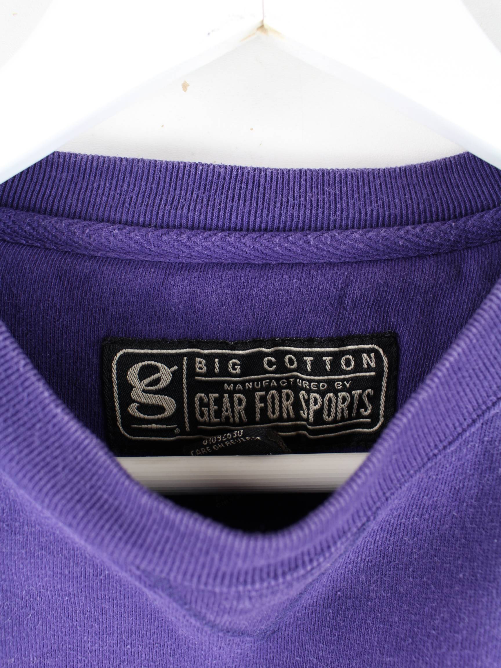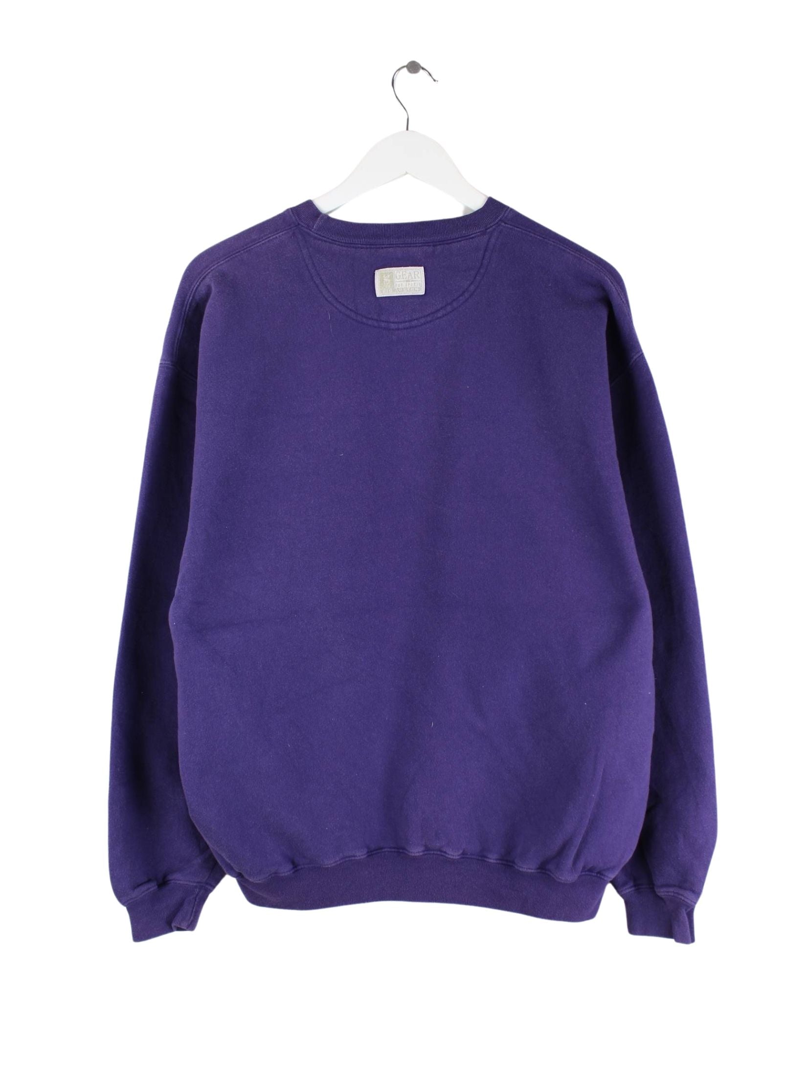 Sweater aus dem Hause Gear for Sports mit gesticktem Logo in Größe M aus den 90'ern. Er ist aus einer Baumwollmischung hergestellt und in Lila auf Lager.