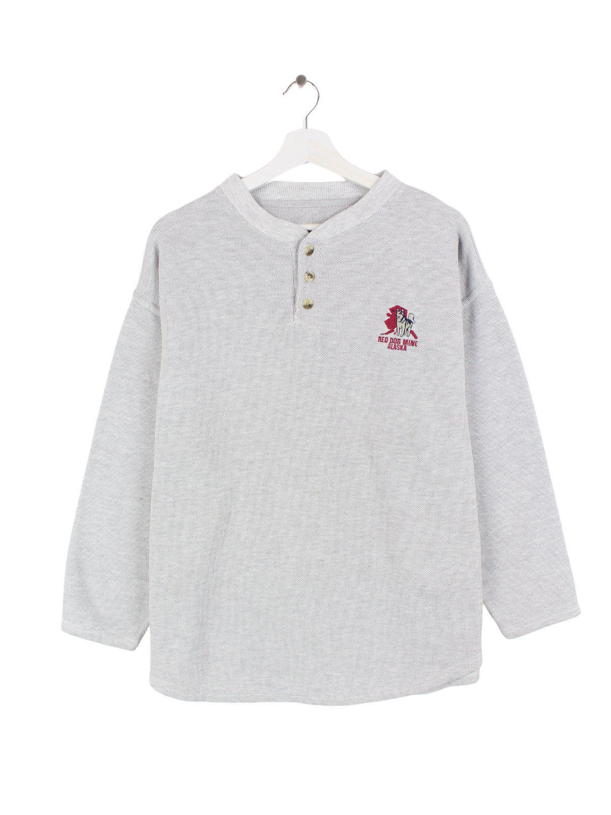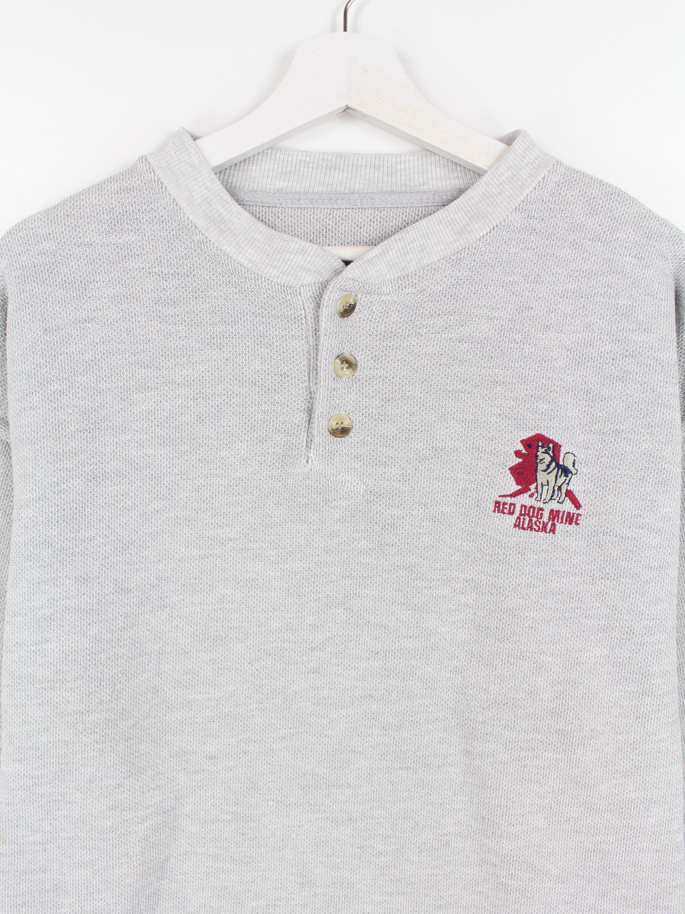 Gray vintage sweater from the Gear for Sports brand, with red embroidery from the Red Dog Mine Alaska.
