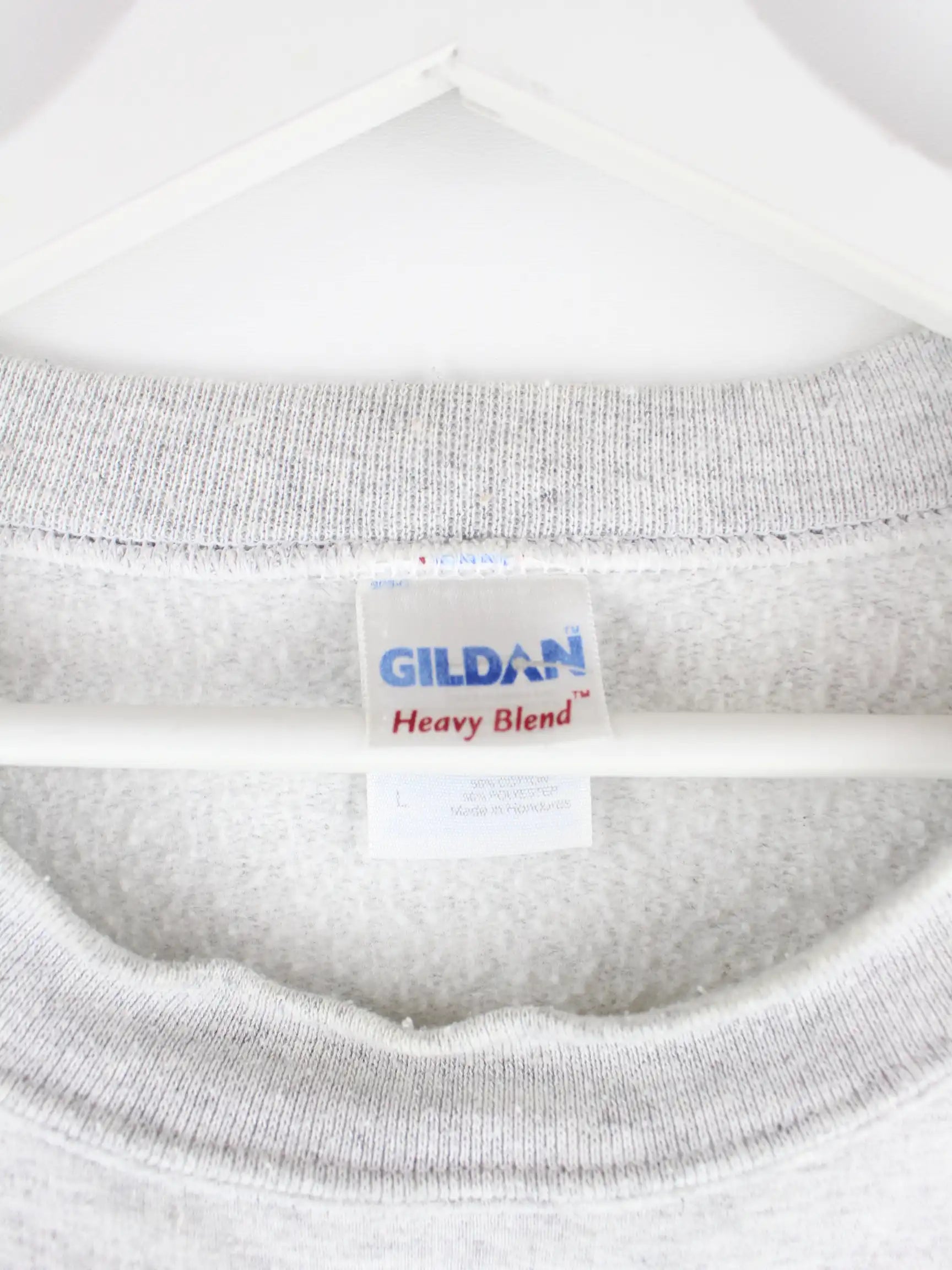 Grauer Sweater vom Brand Gildan in Größe L. Er ist aus einer Baumwollmischung angefertigt und in sehr gutem Zustand bei uns zu bekommen.
