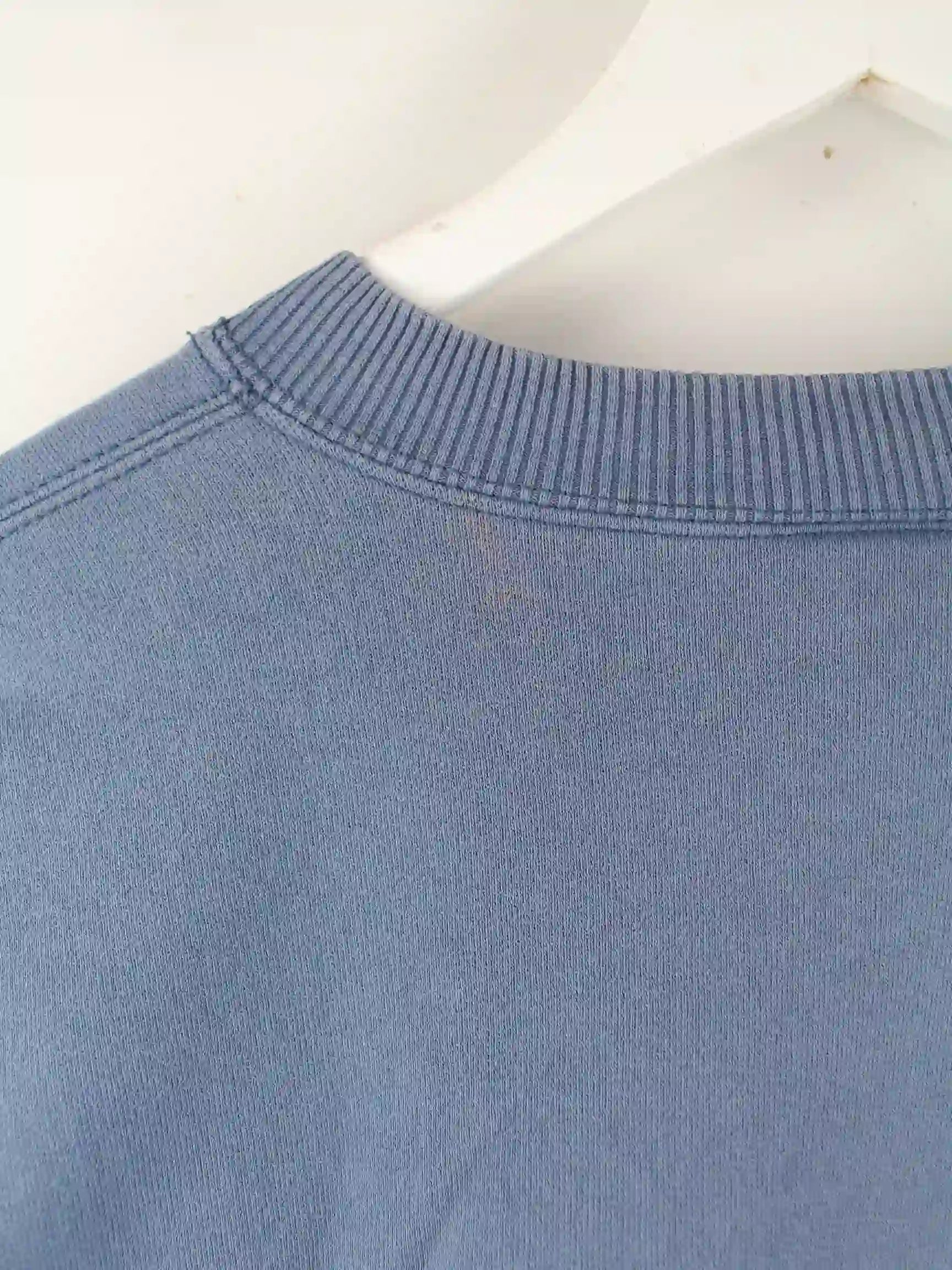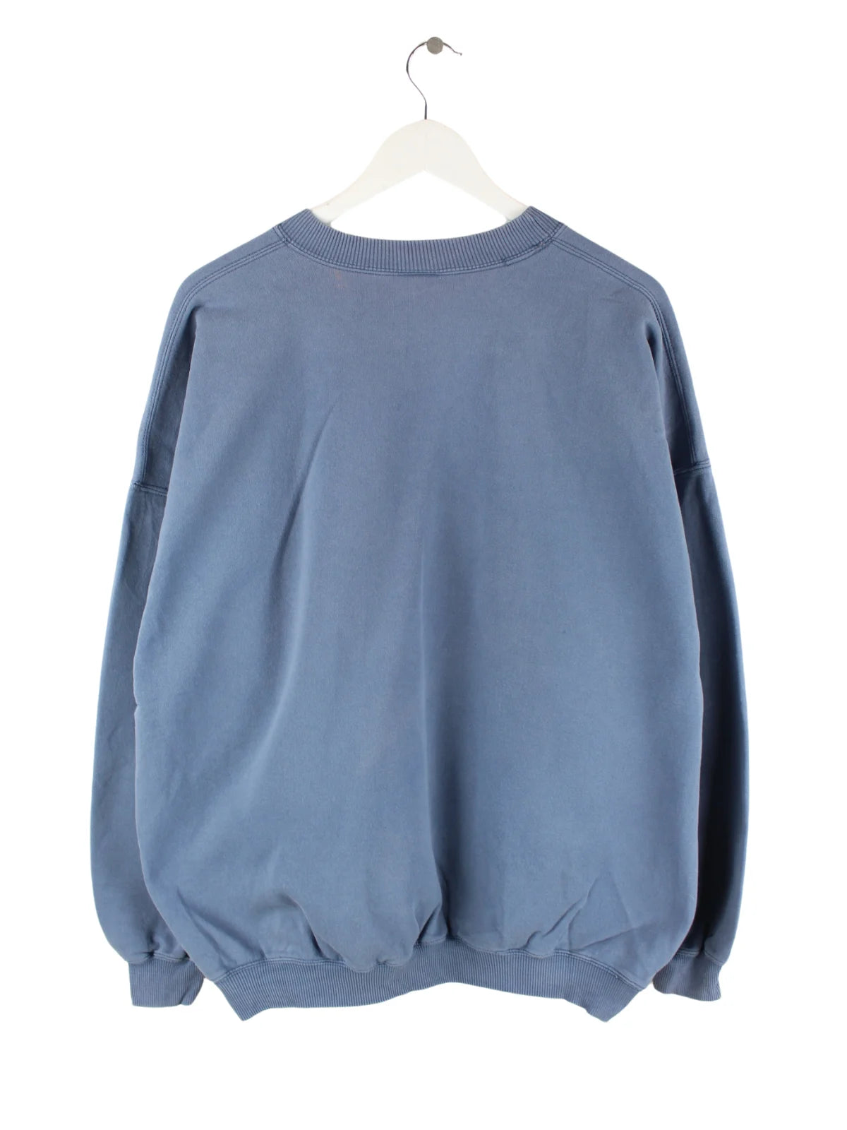 Blauer Sweater mit gestickten Motiven der Brand Gildan aus den 90'ern in Größe XXL. Er ist aus einer Baumwollmischung gefertigt und in gutem Zustand vorrätig.