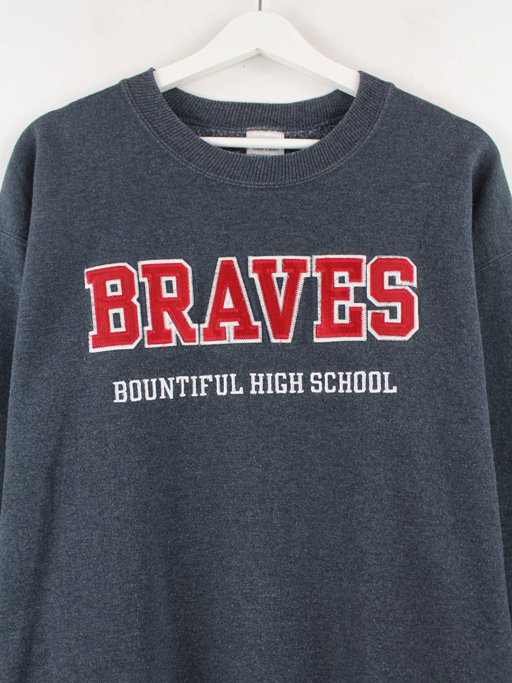 Sweater from the label Gildan with embroidered logo in size M. It is made from a cotton blend and is available in grey.