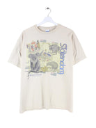 Beigefarbenes T-Shirt der Marke Gildan in Größe L. Es ist aus Baumwolle gemacht und in gutem Zustand auf Lager. Mit seltenem Outback Print.