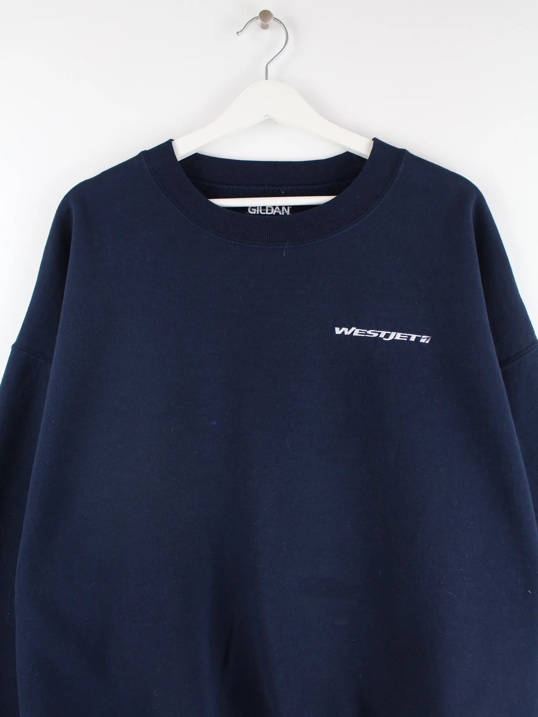 Blauer Sweater der Brand Gildan in Größe XL. Er ist aus einer Baumwollmischung hergestellt. Den Zustand würden wir als 'In Ordnung' bezeichnen (vergl. Bilder).