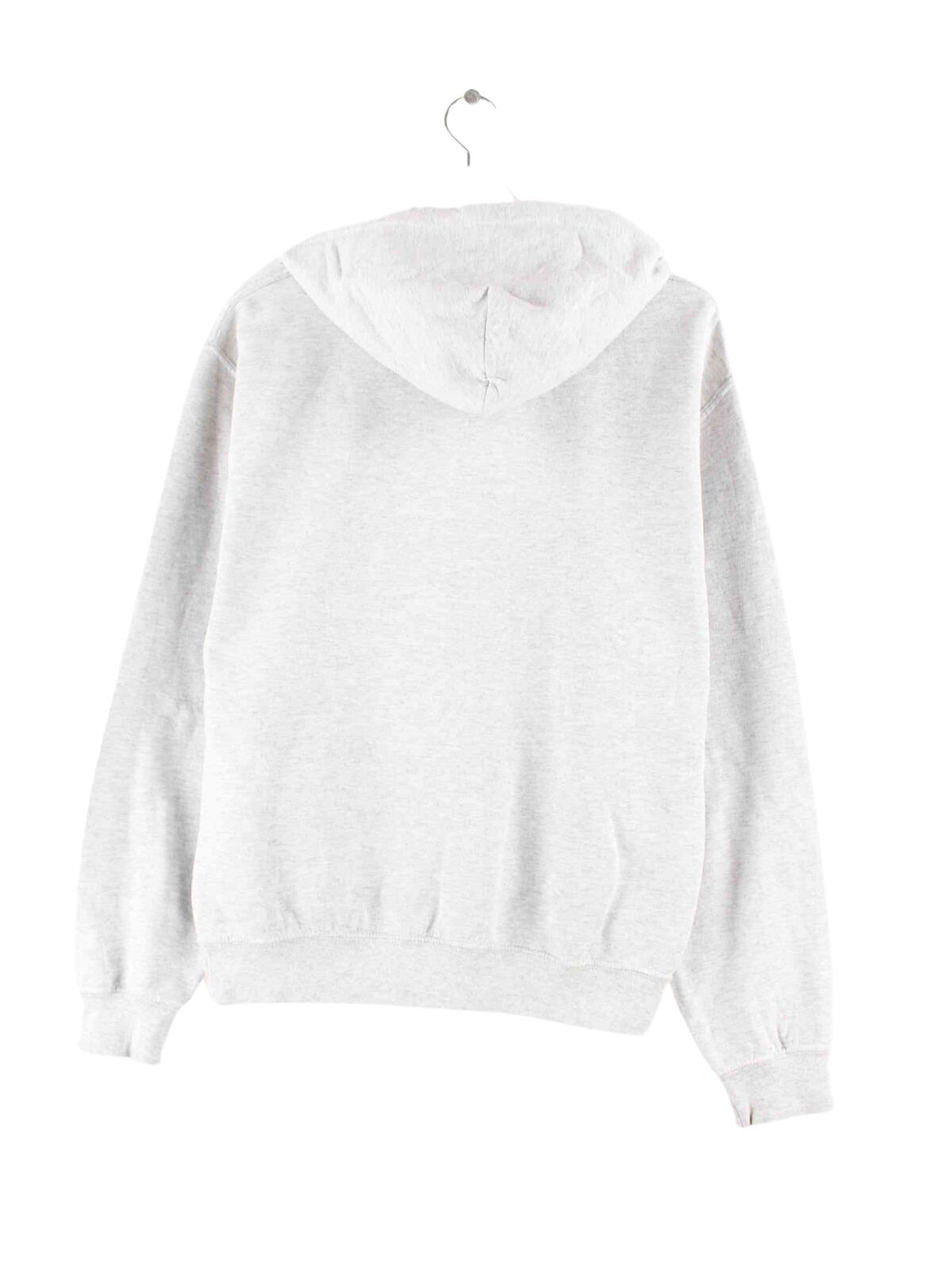 Hoodie from the Gildan brand with embroidered logo in size M from the early 2000s. It is made from a cotton blend and is available in gray.