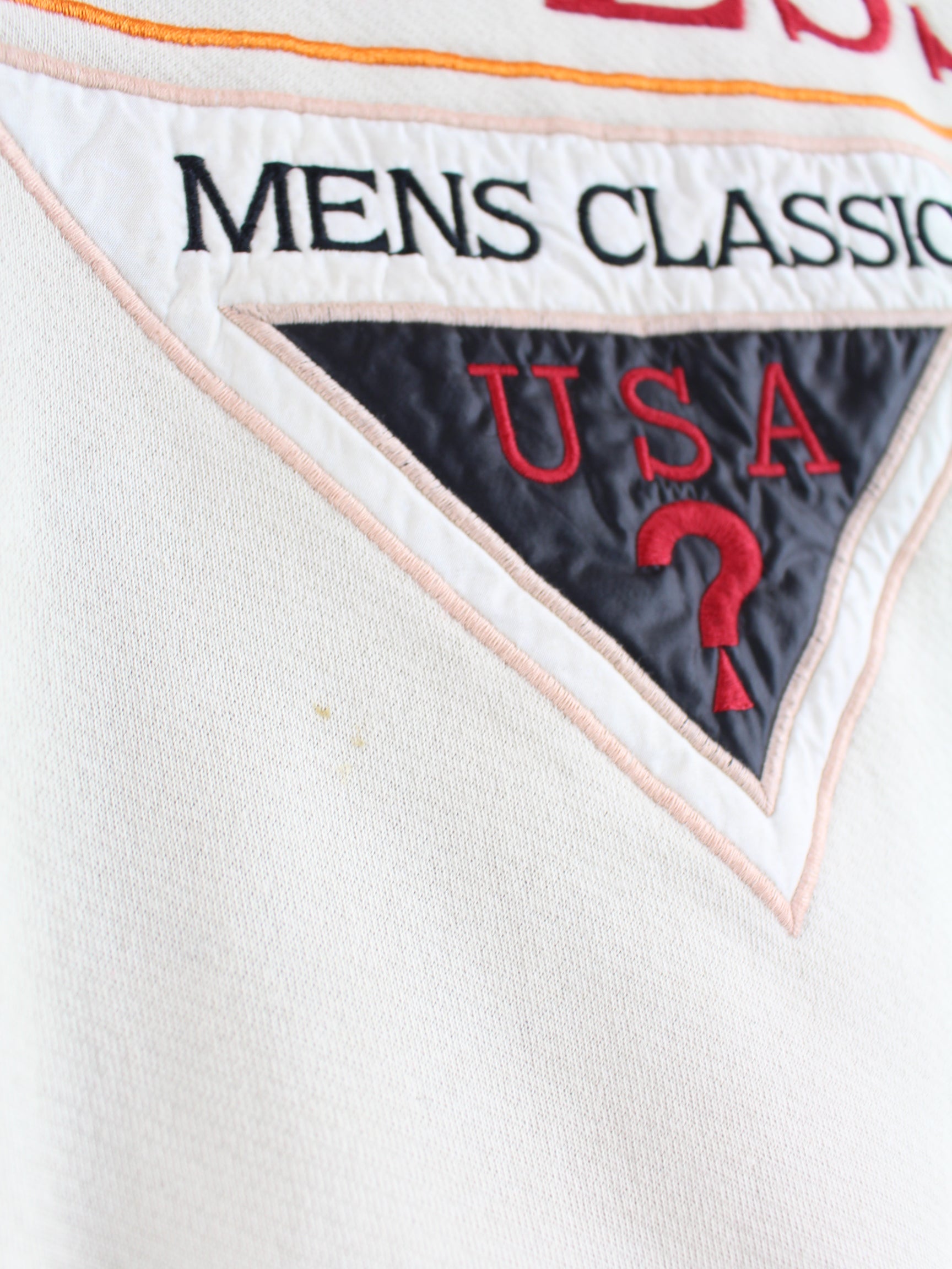 Sweater by Guess with embroidered logo in size M. It is made of a cotton blend and comes in beige.