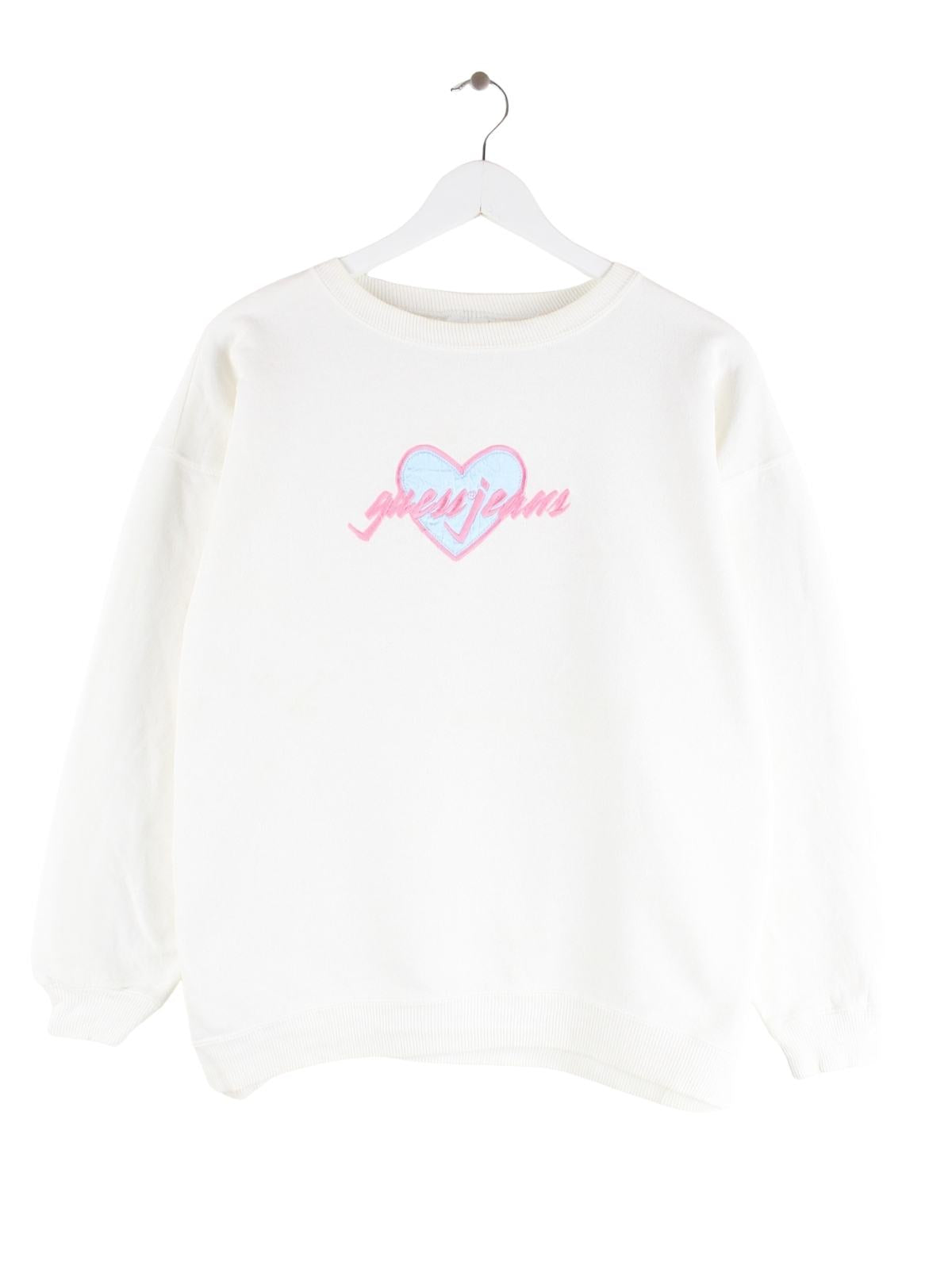 Guess Damen 90s Vintage Heart Sweater Weiß M