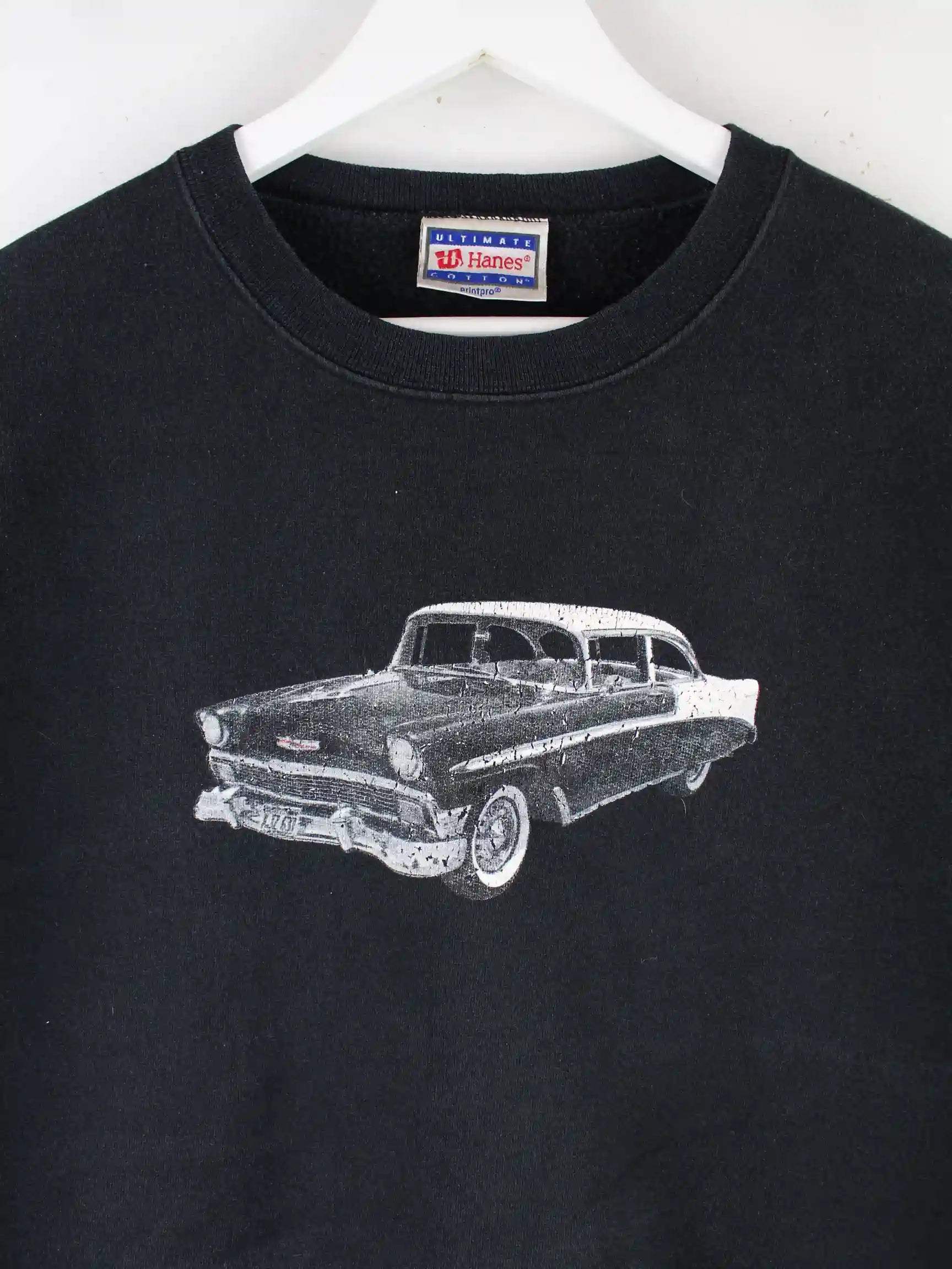 Hanes 90s Vintage Car Embroidered Sweater Schwarz M