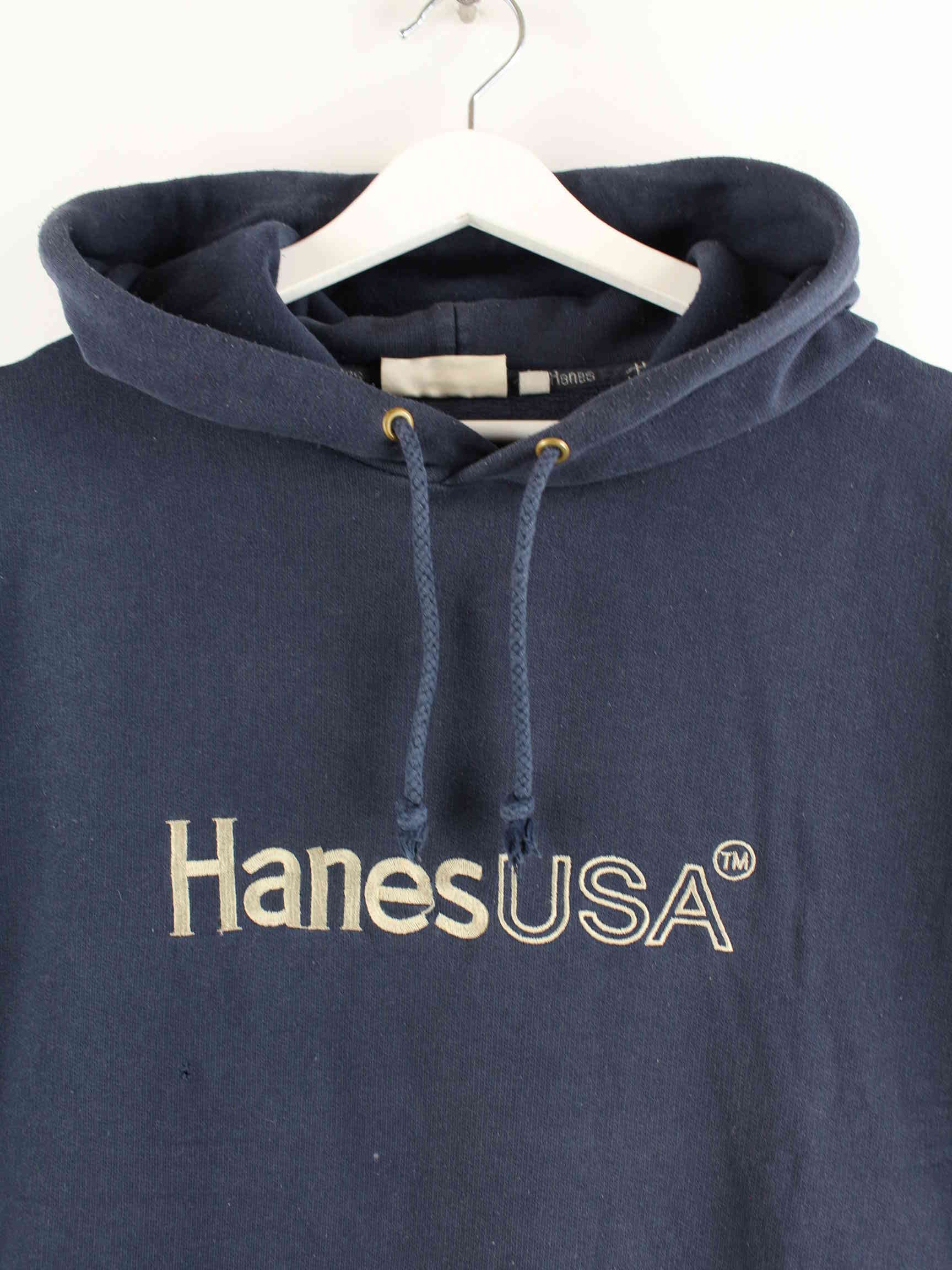 Hanes 90s Vintage Embroidered Hoodie Blue L