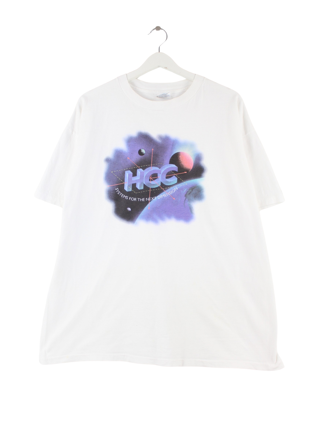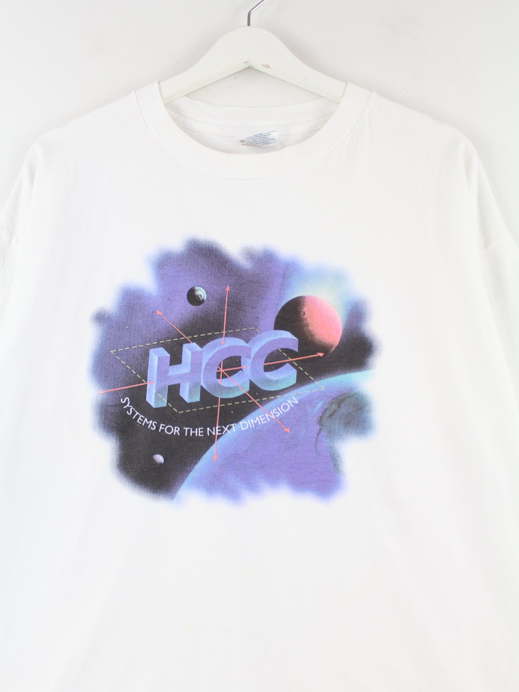 Hanes 90s Vintage HCC Print Single Stitch T-Shirt White XL