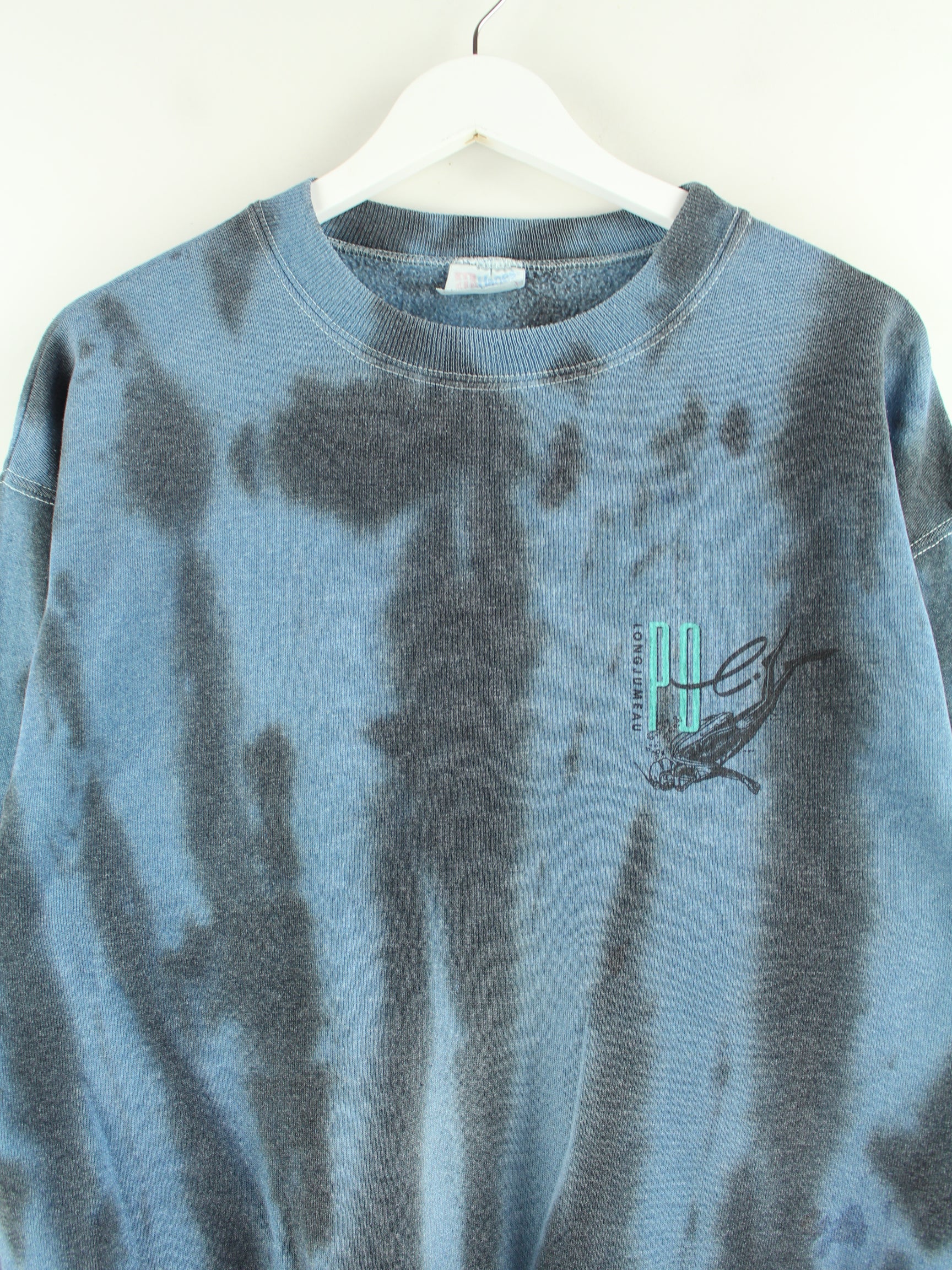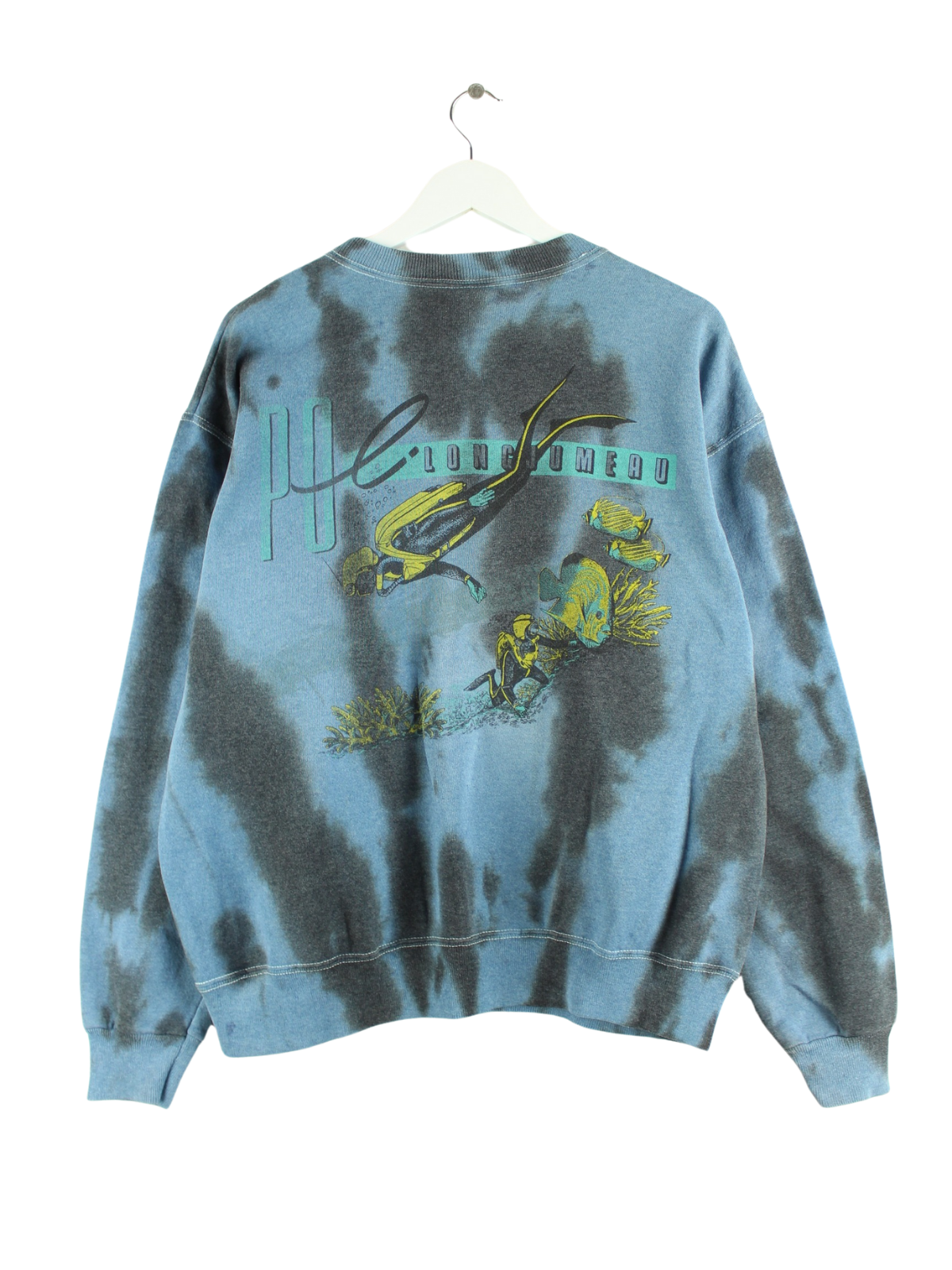 Hanes 90s Vintage Longjumeau Dive Print Tie Dye Sweater Blue XL