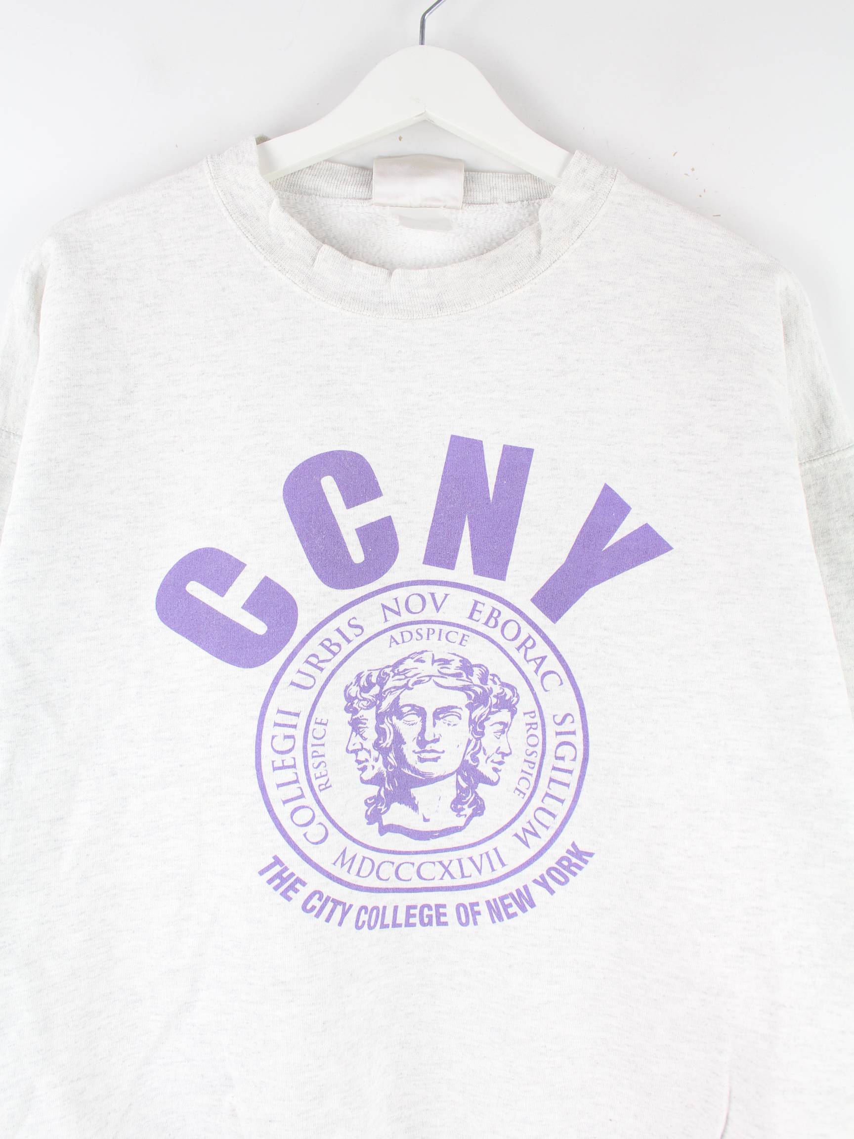Hanes 90s Vintage New York College Print Heavy Sweater Grau L