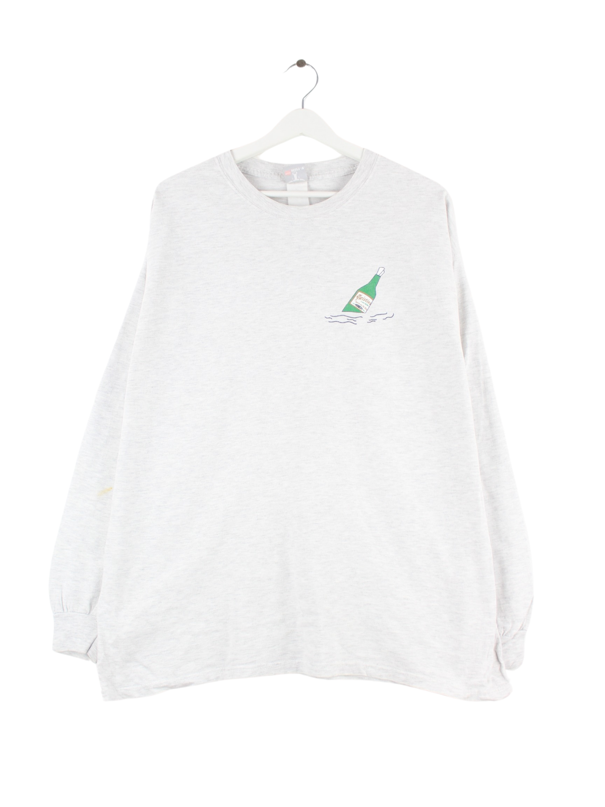 Sweatshirt from the brand Hanes in size XL. It is made of cotton and is available from us in grey. With a beautiful island print.