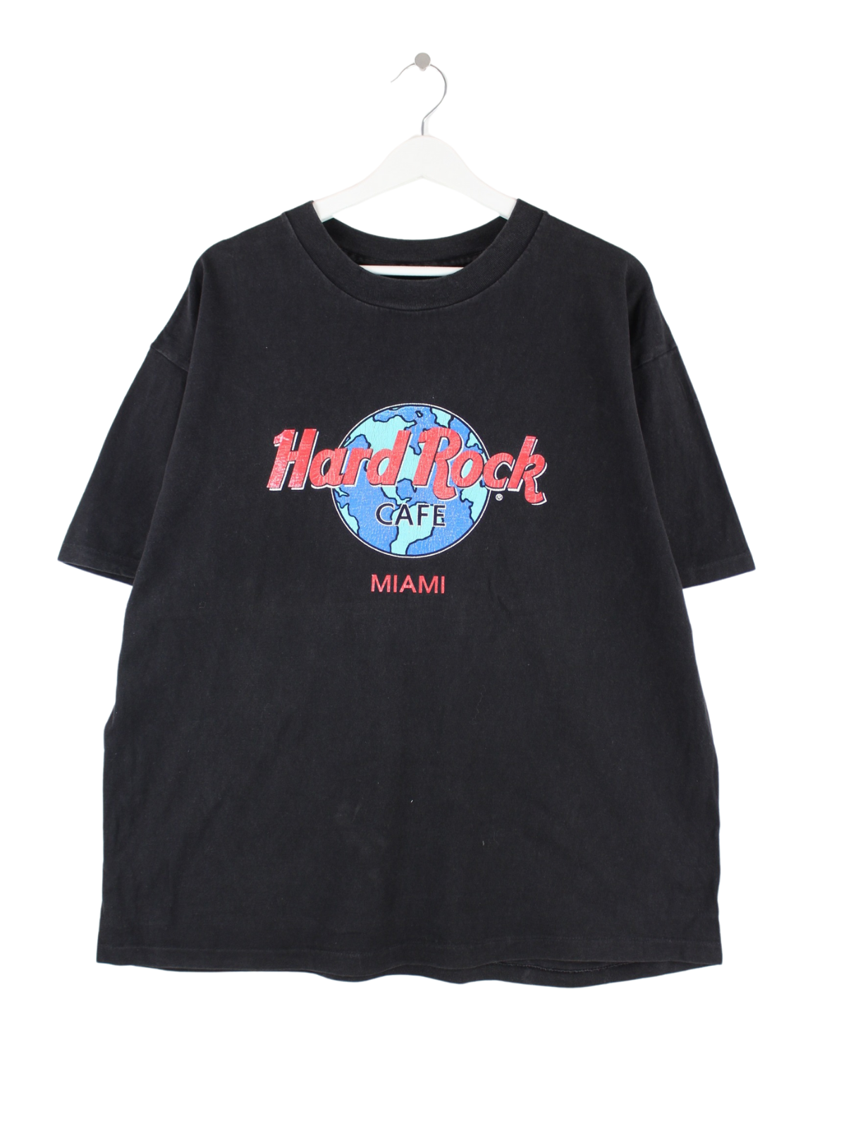 Black T-shirt from the Hard Rock Cafe label from the 90's in size XL. It is made of cotton and in good condition. With a chic Miami print.