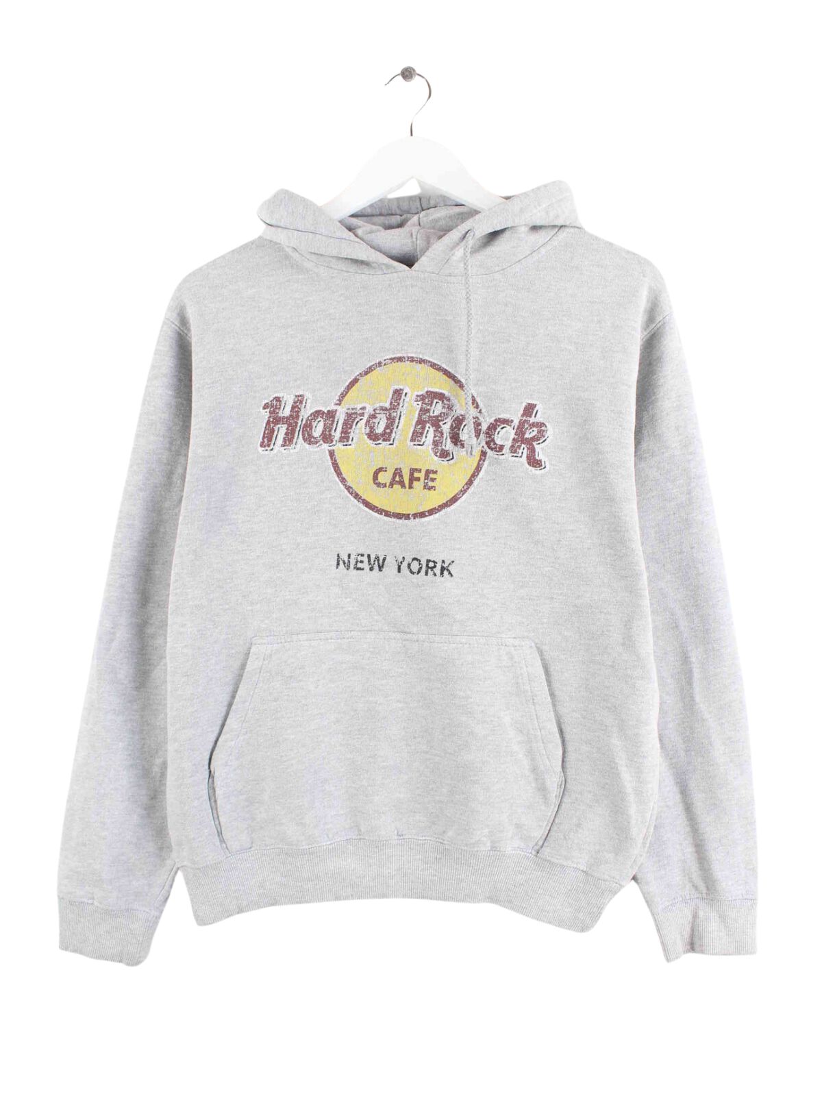 Hoodie from the Hard Rock Cafe brand in size M. It is made from a cotton blend and is available in gray.