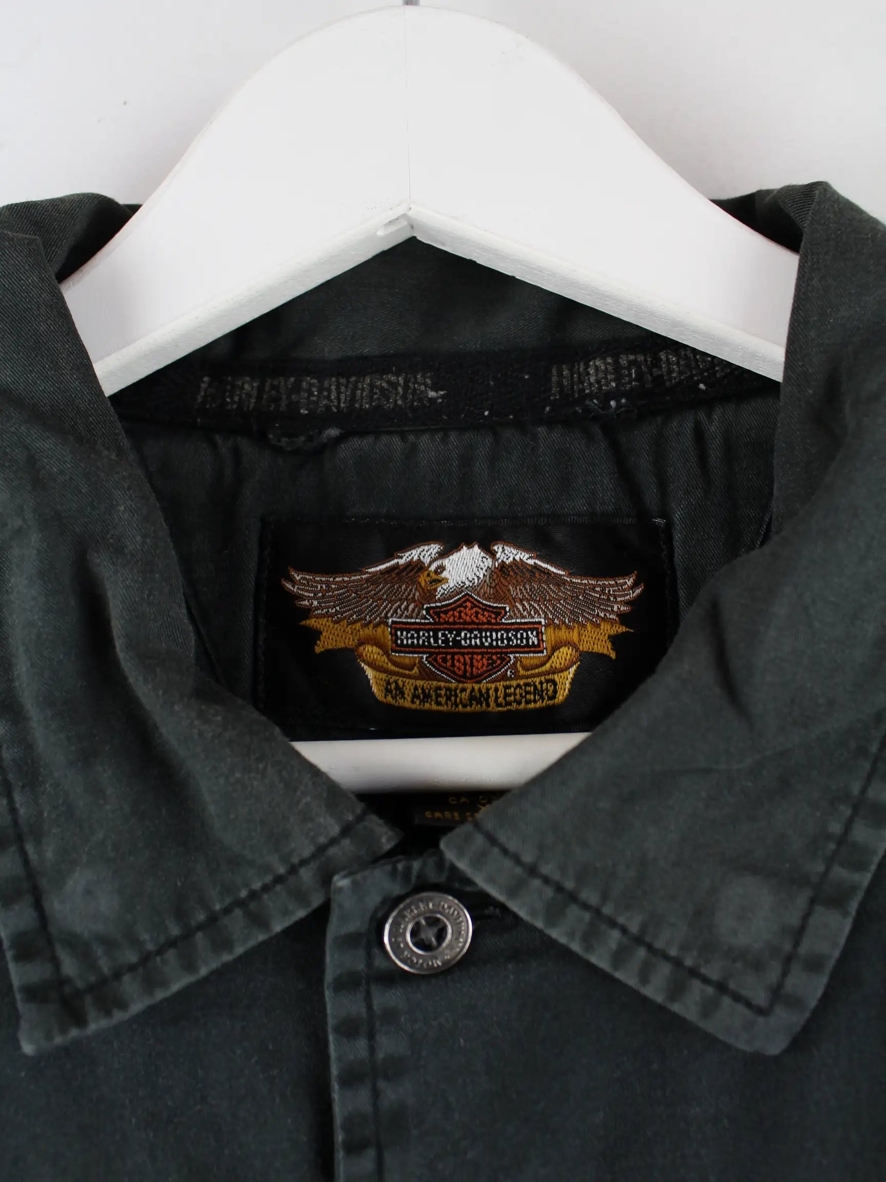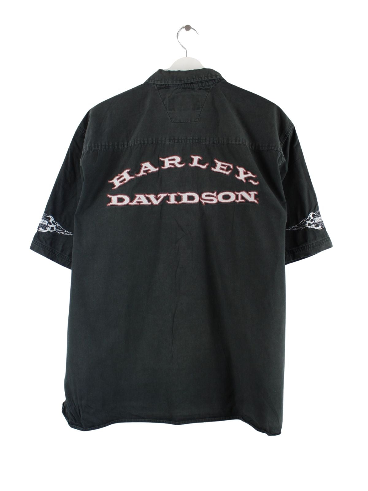 Freizeit Hemd von Harley Davidson mit gestickten Motiven in Größe XL. Es ist aus Baumwolle gemacht und in Schwarz lieferbar.