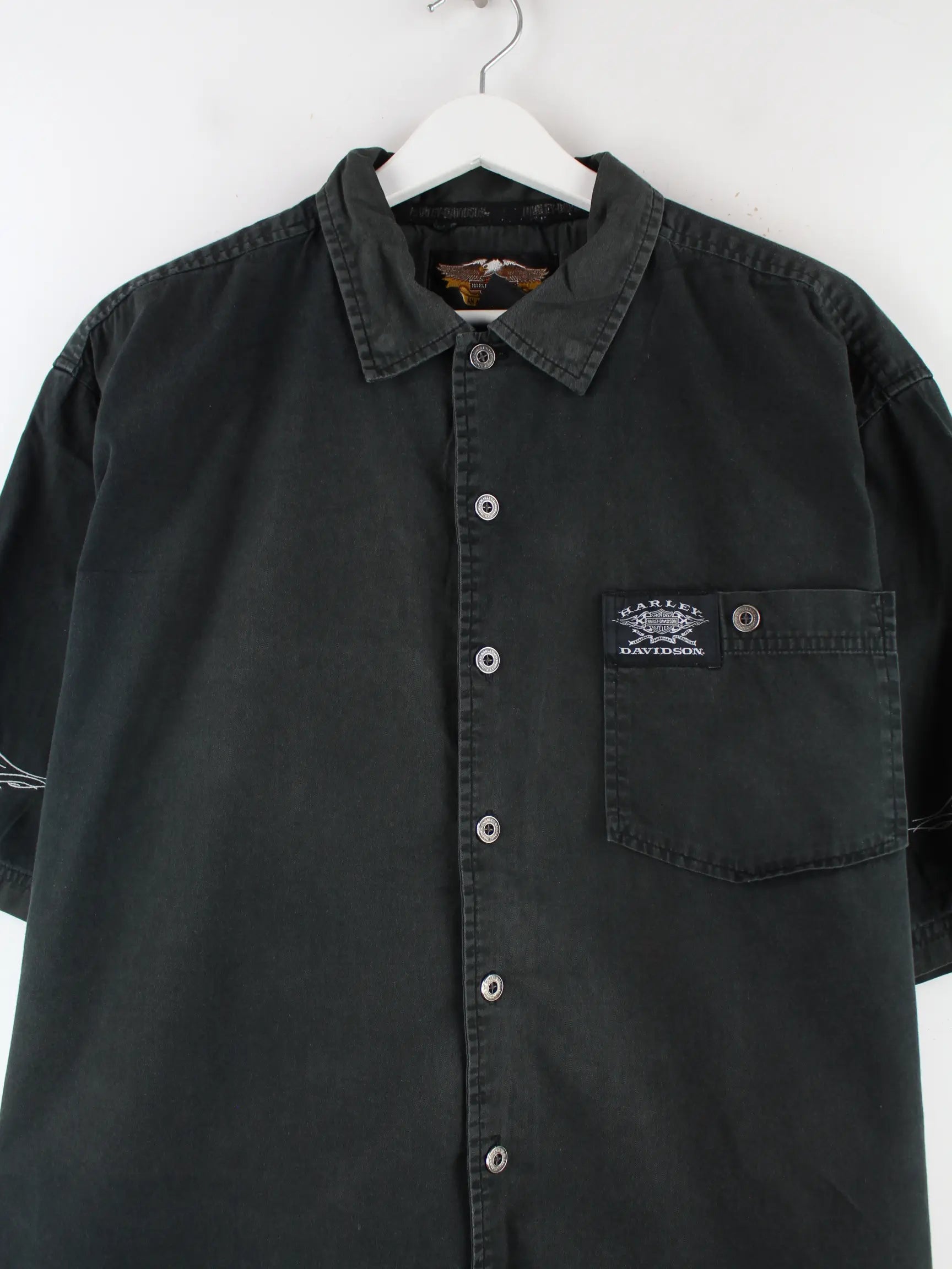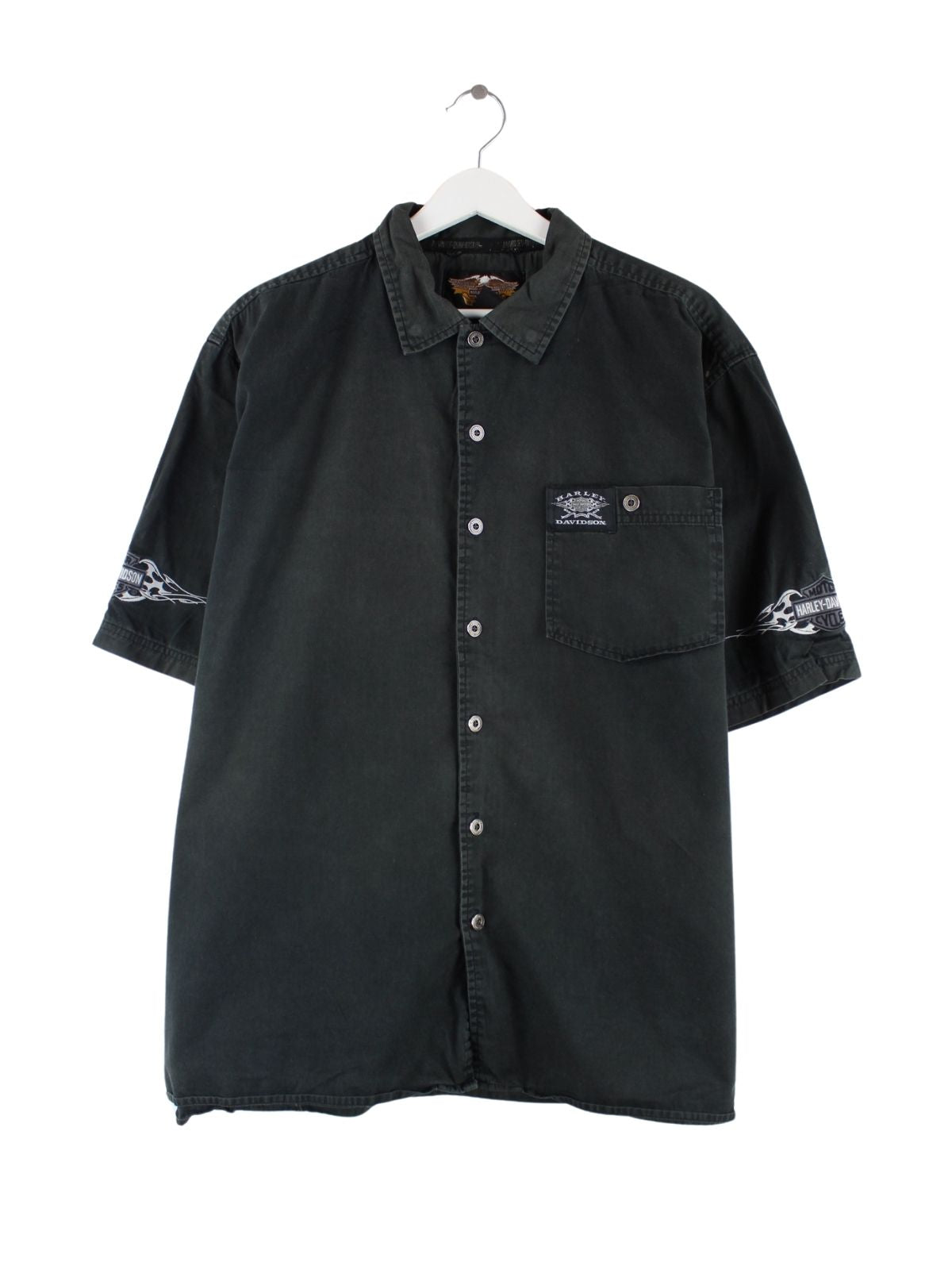 Harley Davidson 00s Embroidered Kurzarm Hemd Schwarz XL