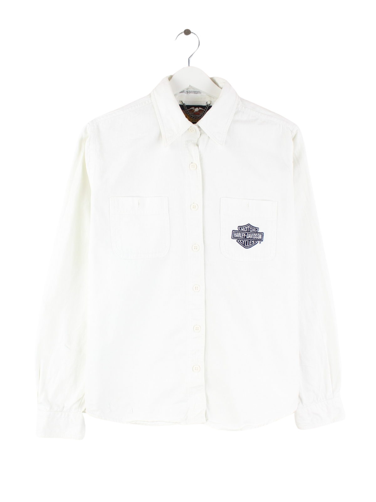 Weißes Freizeit Hemd mit Stick der Brand Harley Davidson aus den 90'ern in Größe M. Es ist aus Baumwolle angefertigt und in gutem Zustand in Stock.