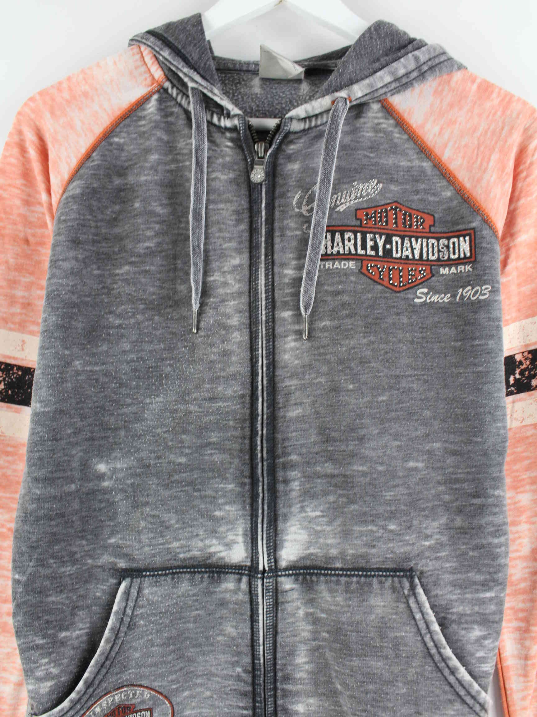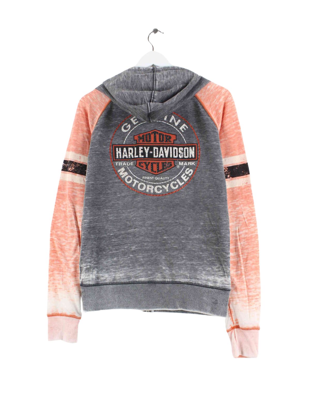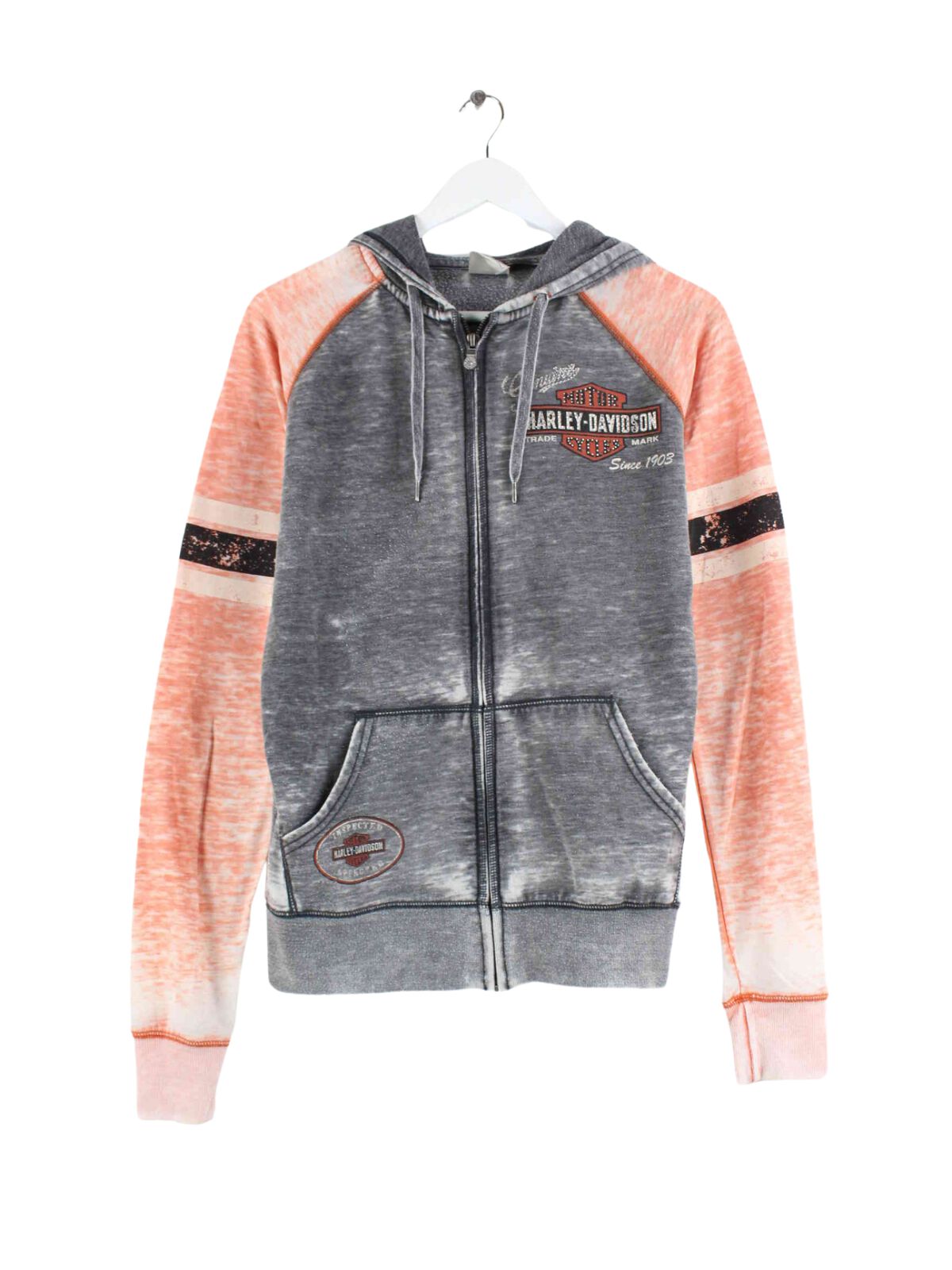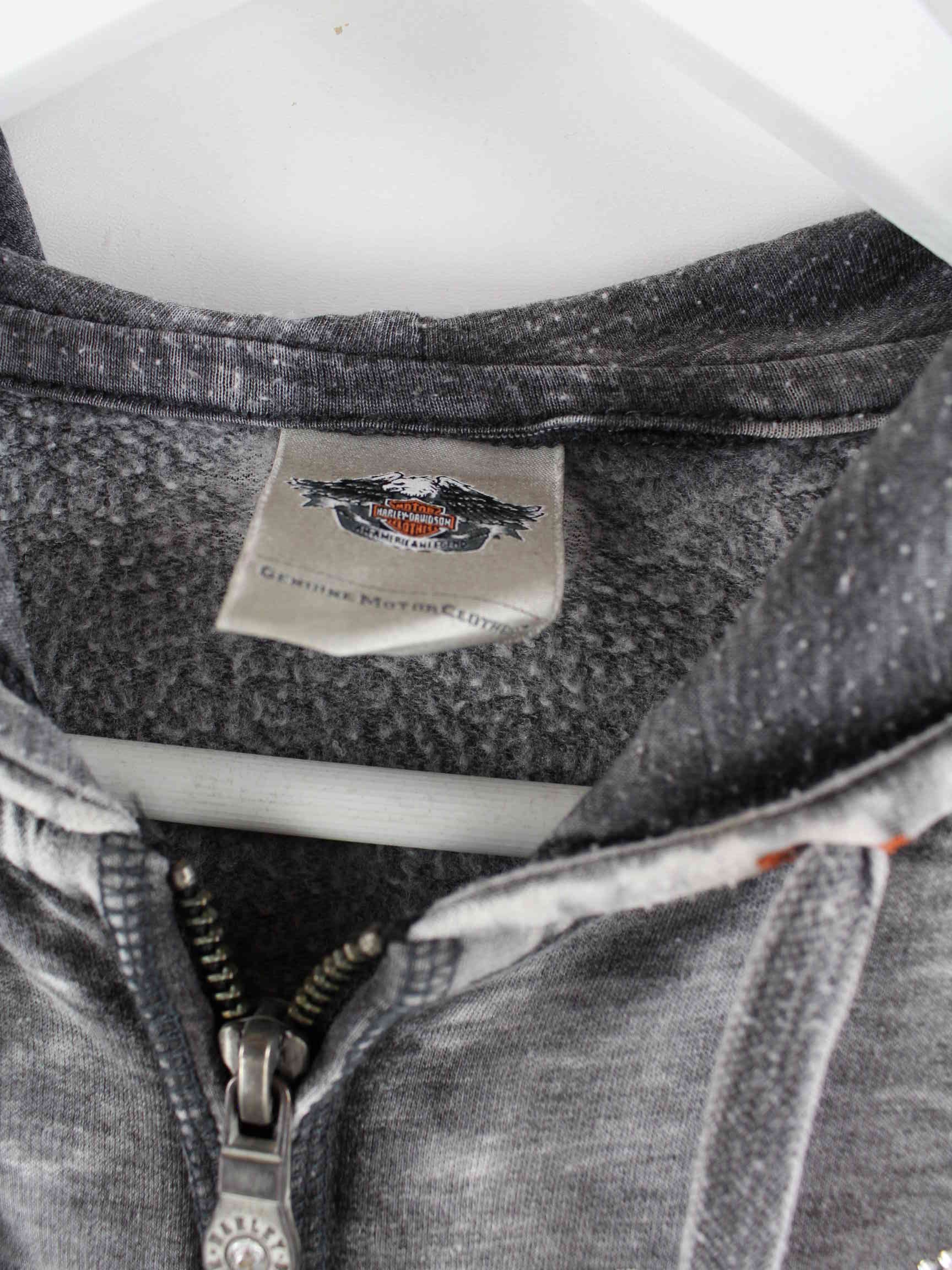 Hoodie from Harley Davidson with a full-length zipper in size M. It is made of a cotton blend and available in gray. With rare undefined print.