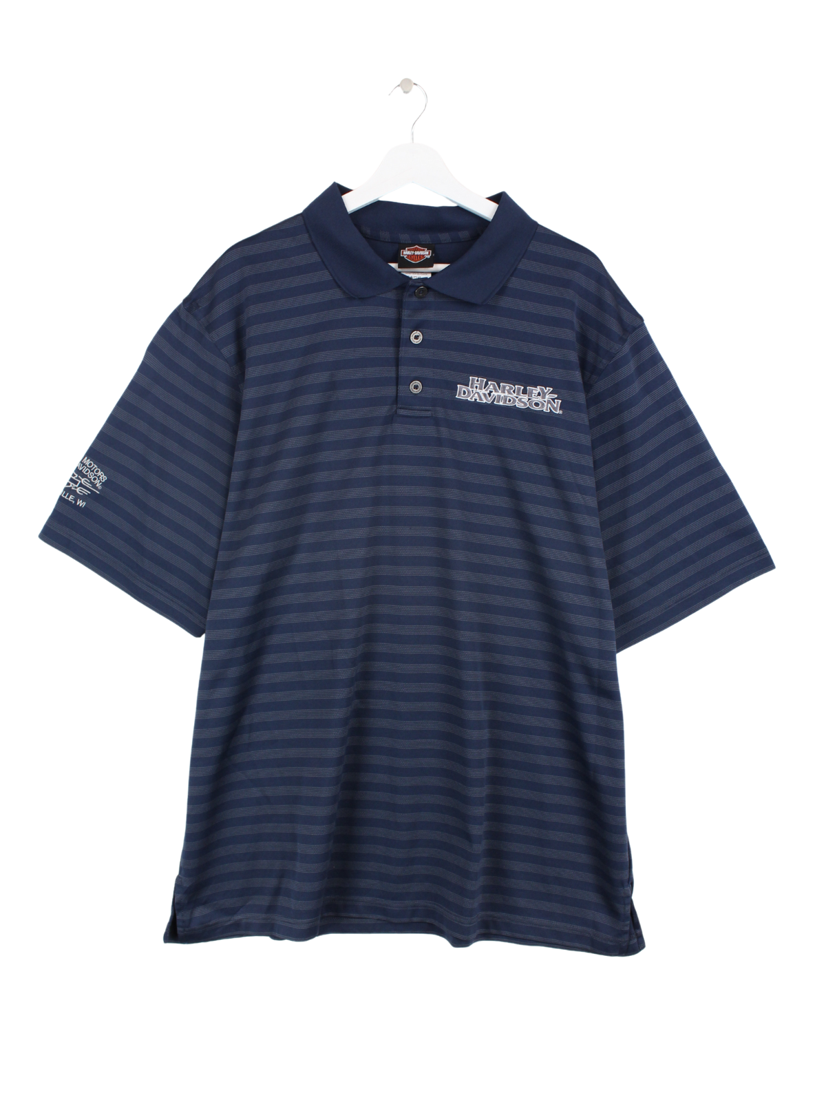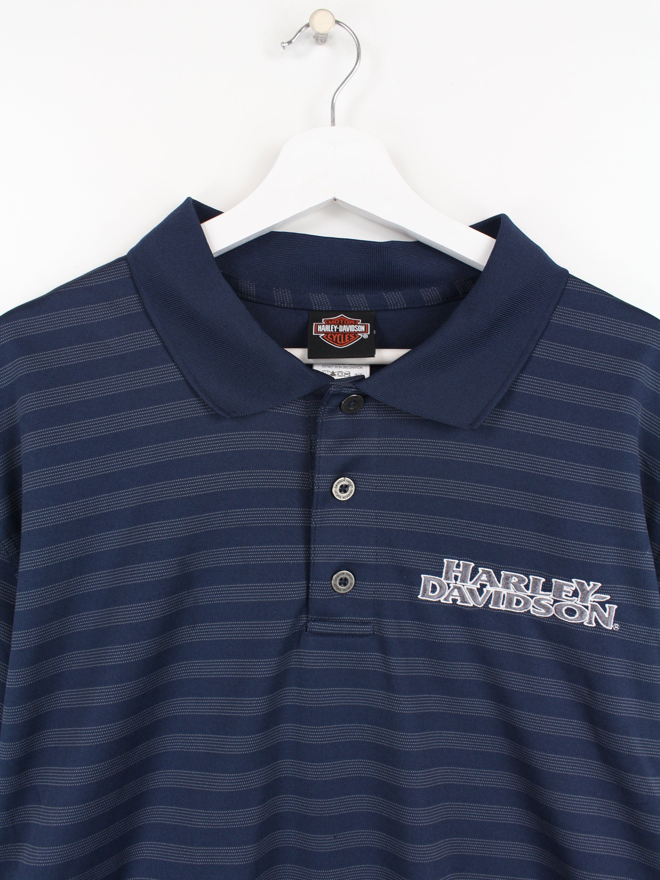 Blue Harley Davidson polo shirt with embroidered logo on the chest.