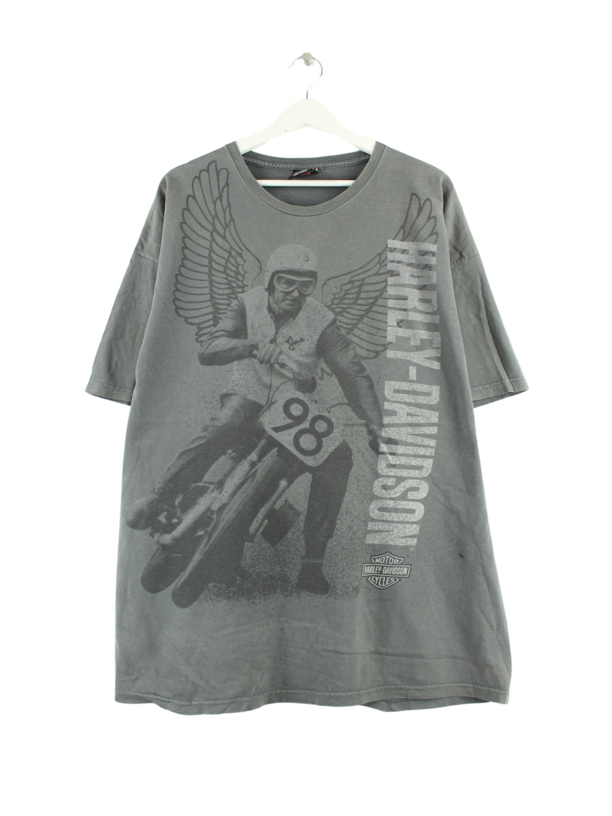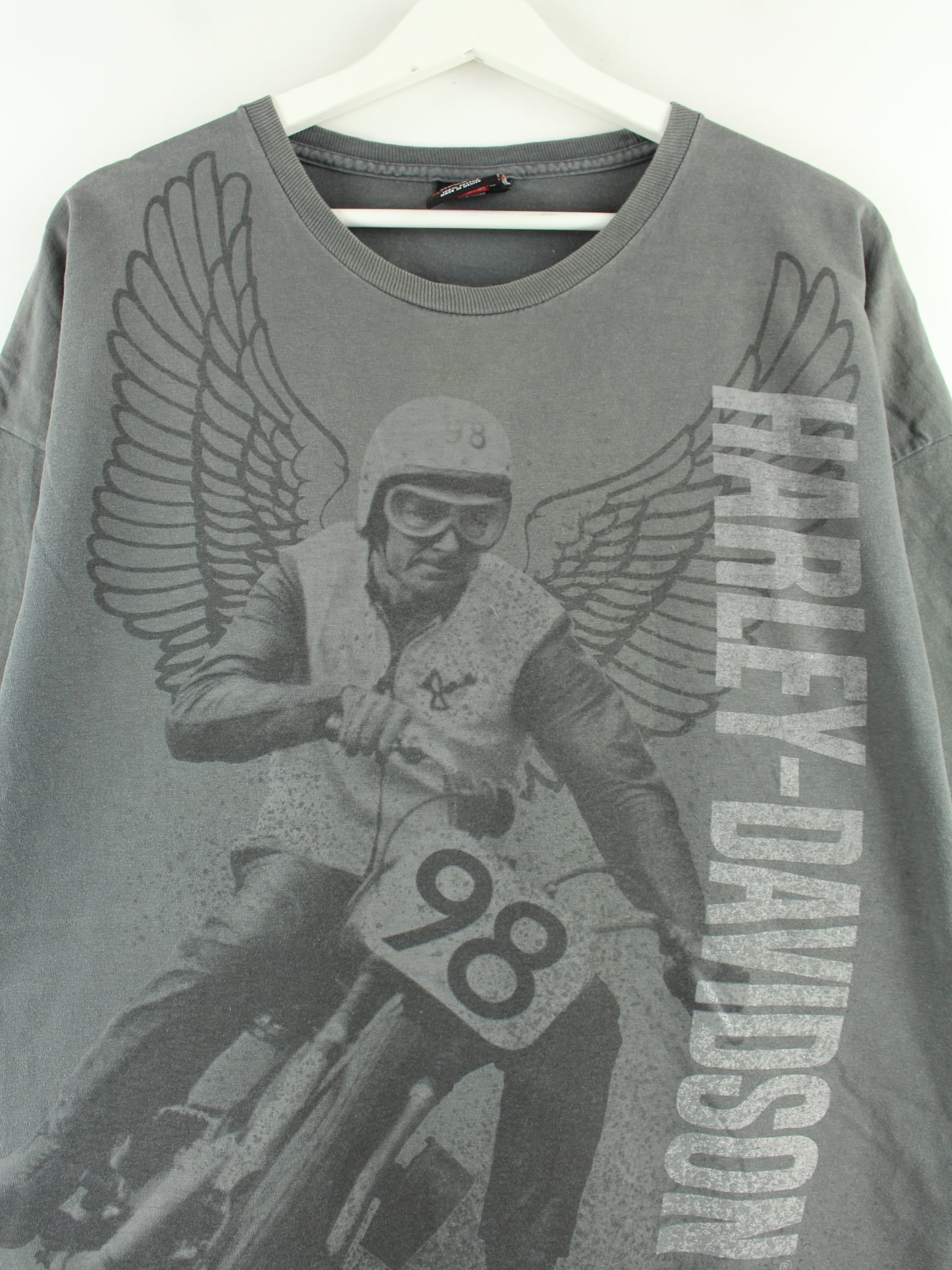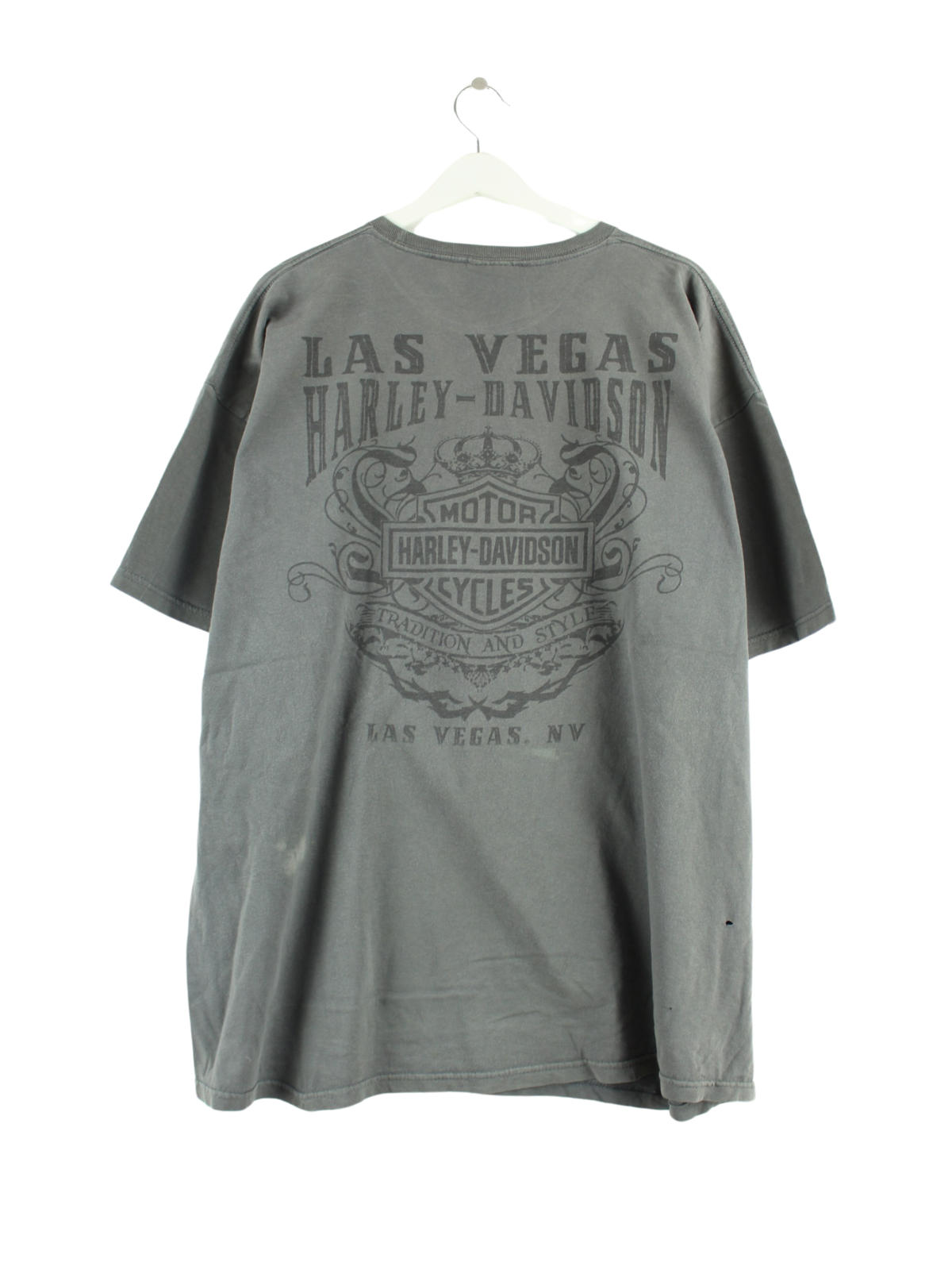 T-shirt from the Harley-Davidson brand in size XXL from the early 2000s. It is made of cotton and is available from us in grey. With a rare Vegas print.