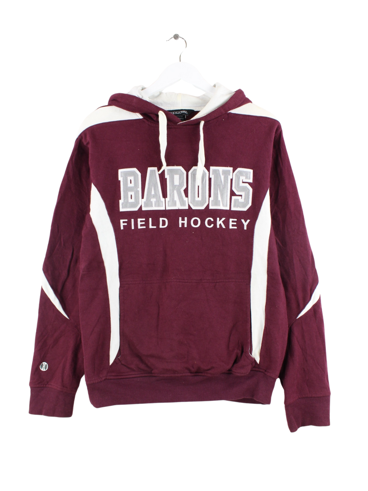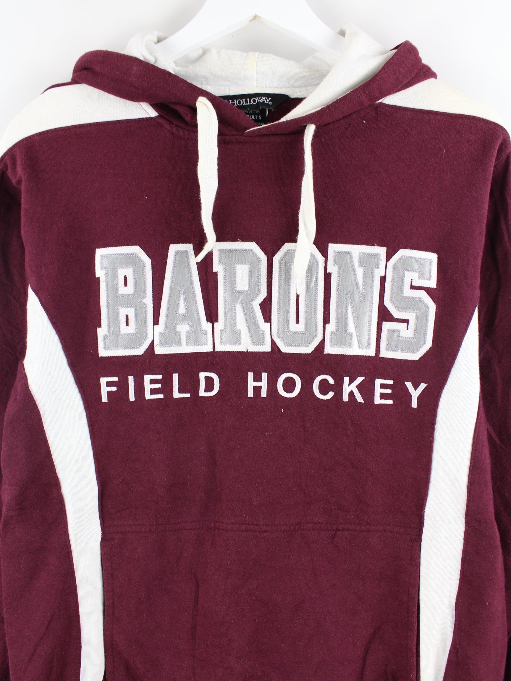 Hoodie from the Holloway label with embroidered logo in size M from the early 2000s. It is made from a cotton blend and is available in red.