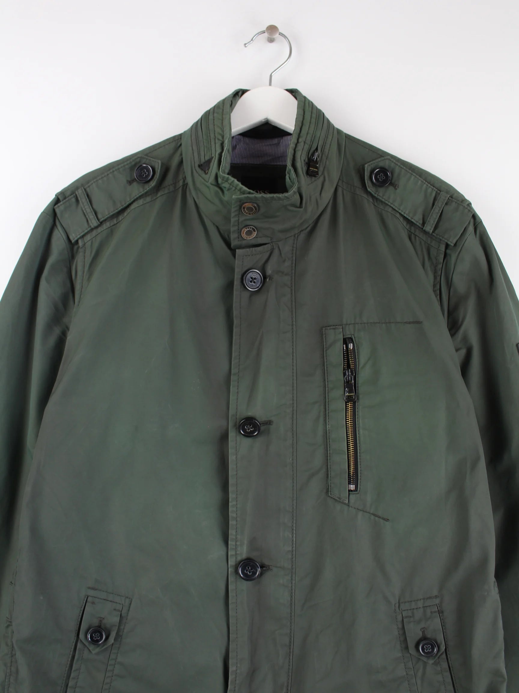 Leichte Jacke des Labels Hugo Boss in Größe L. Sie ist aus Synthetik angefertigt und in Grün lieferbar.