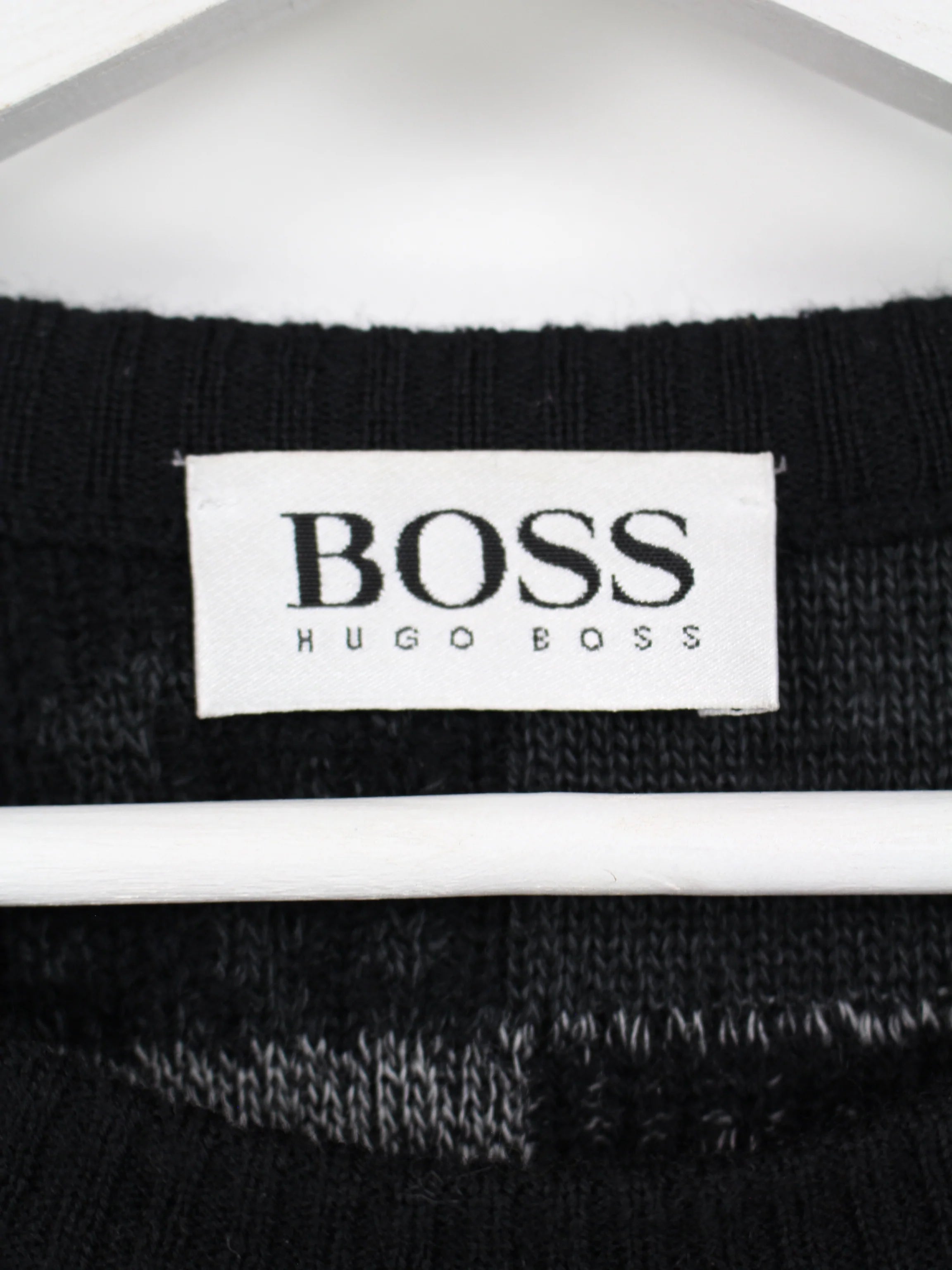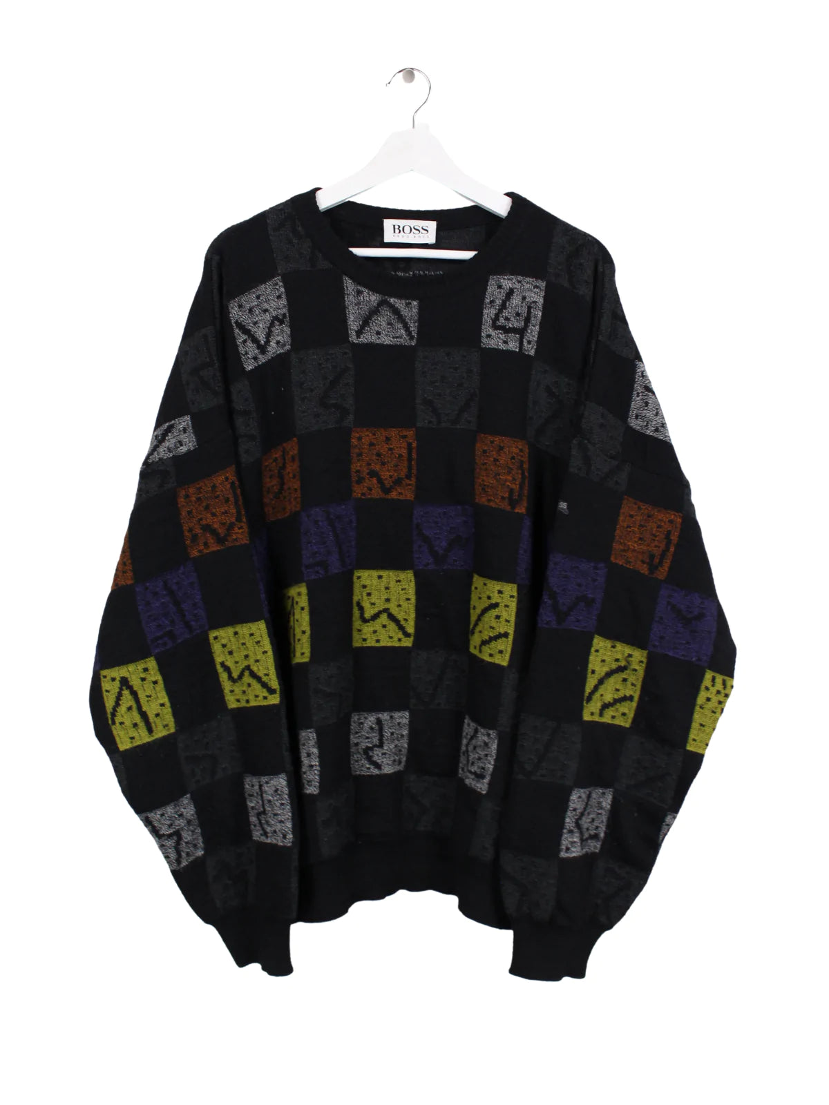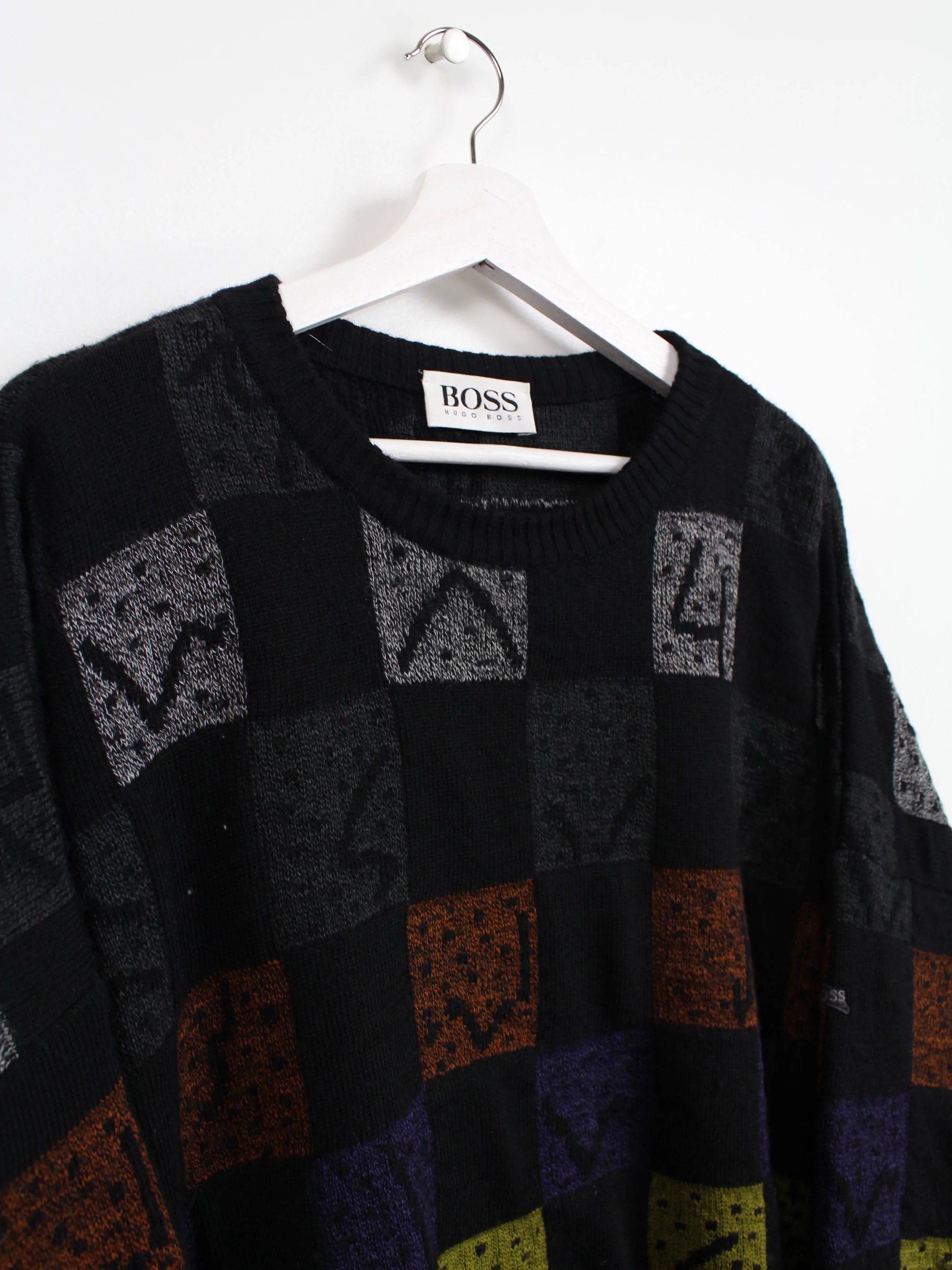 Chic 90s knit sweater from the brand Hugo Boss, in a checked retro look.