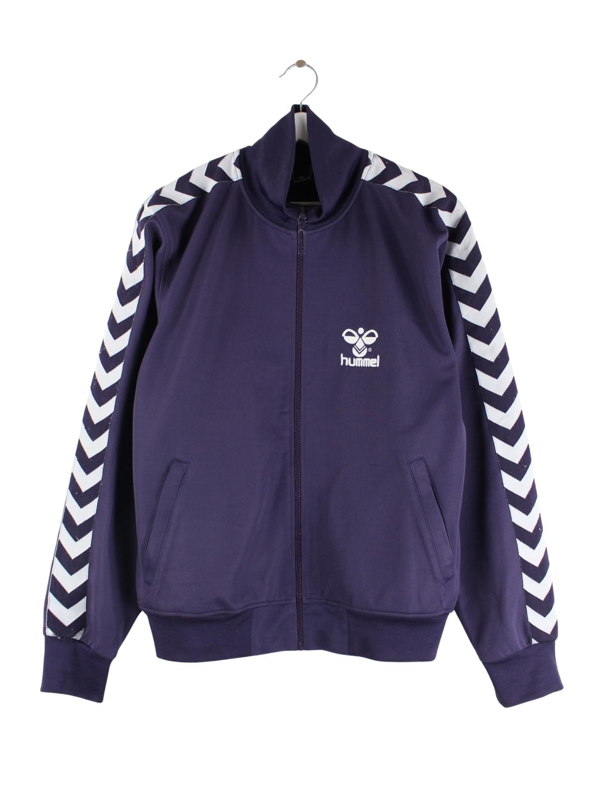 Trainingsjacke der Marke Hummel in Größe XL. Sie ist aus Synthetik gemacht und in Lila bei uns vorrätig.