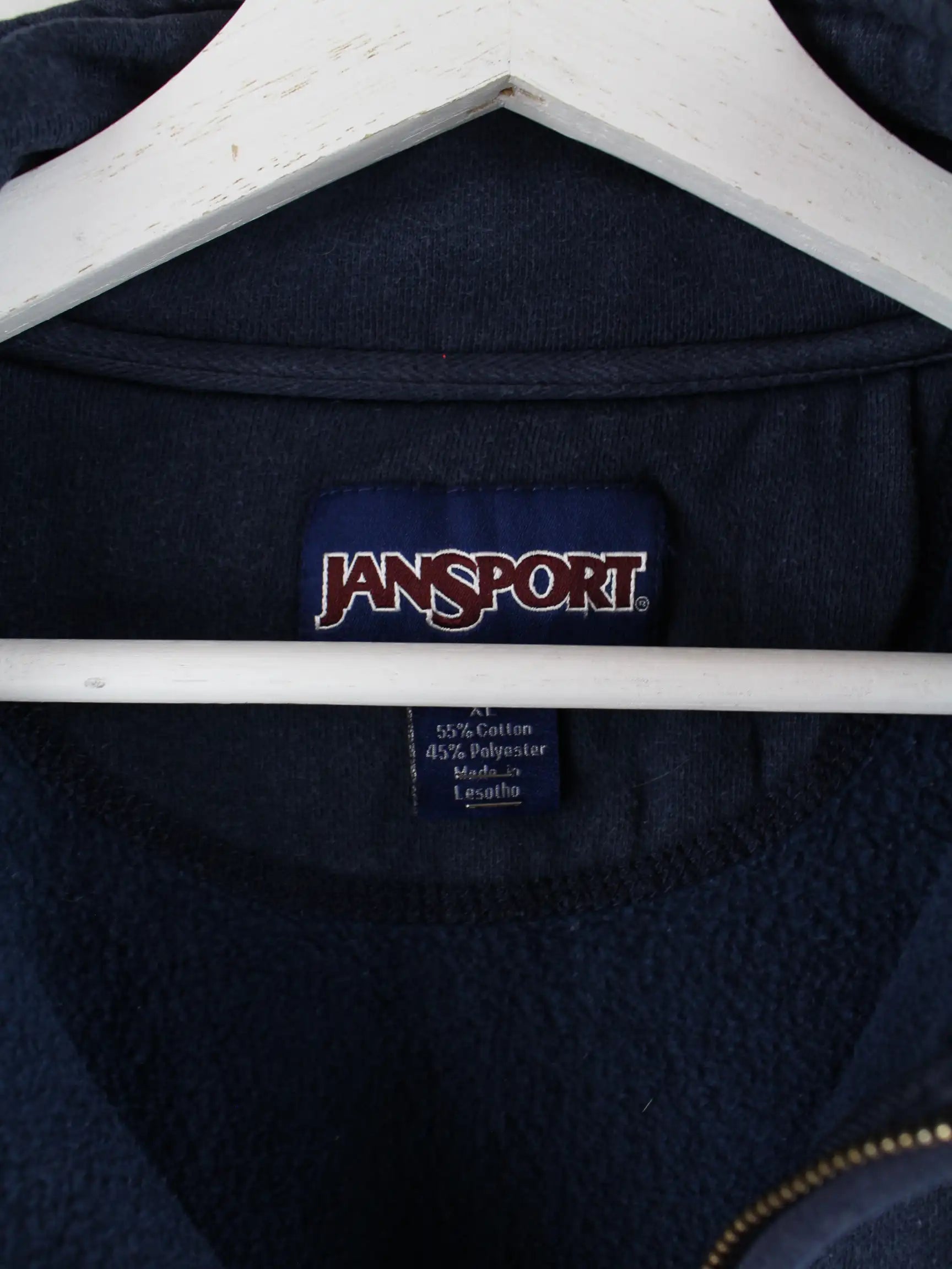 Sweater aus dem Hause Jansport mit half Zip in Größe XL aus den 90'ern. Er ist aus einer Baumwollmischung produziert und in Blau im Bestand.