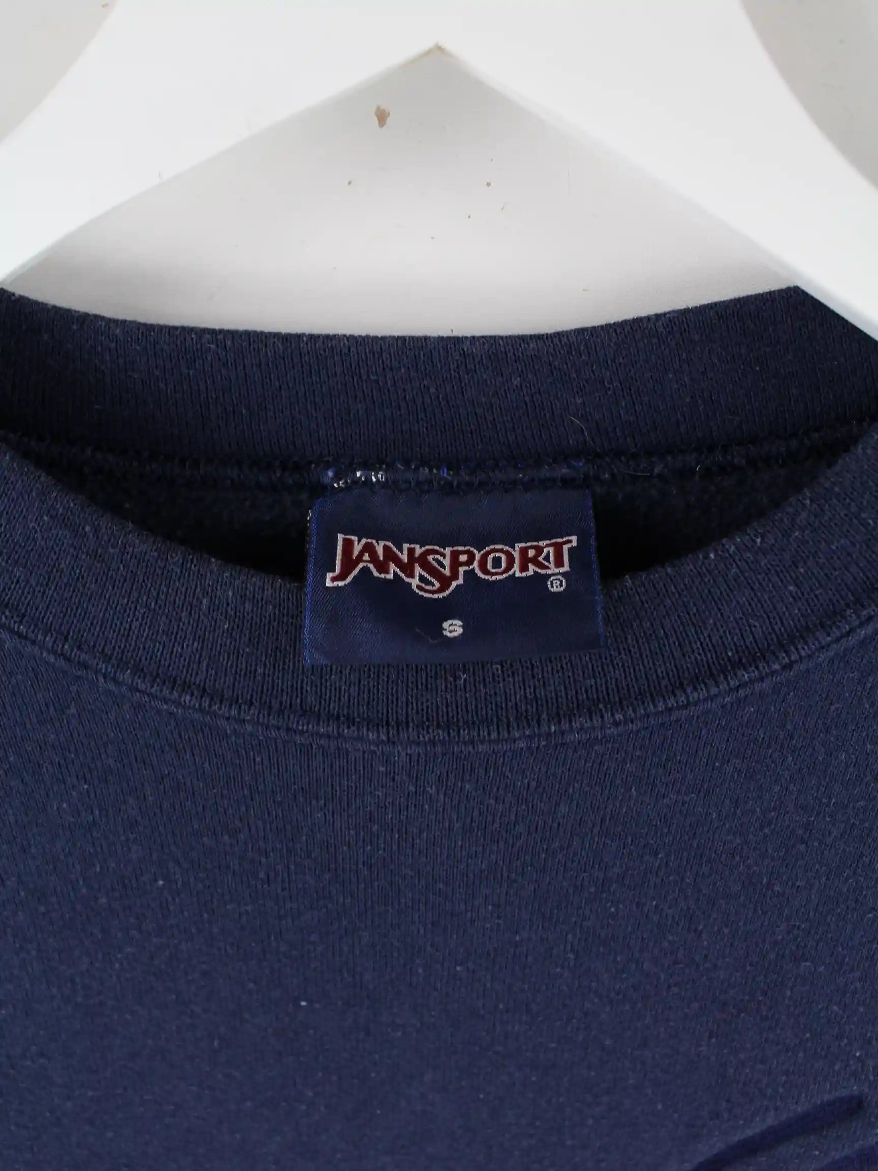 Sweater vom Label Jansport in Größe S aus den 90'ern. Er ist aus einer Baumwollmischung gefertigt und in Blau bei uns zu bekommen.