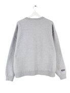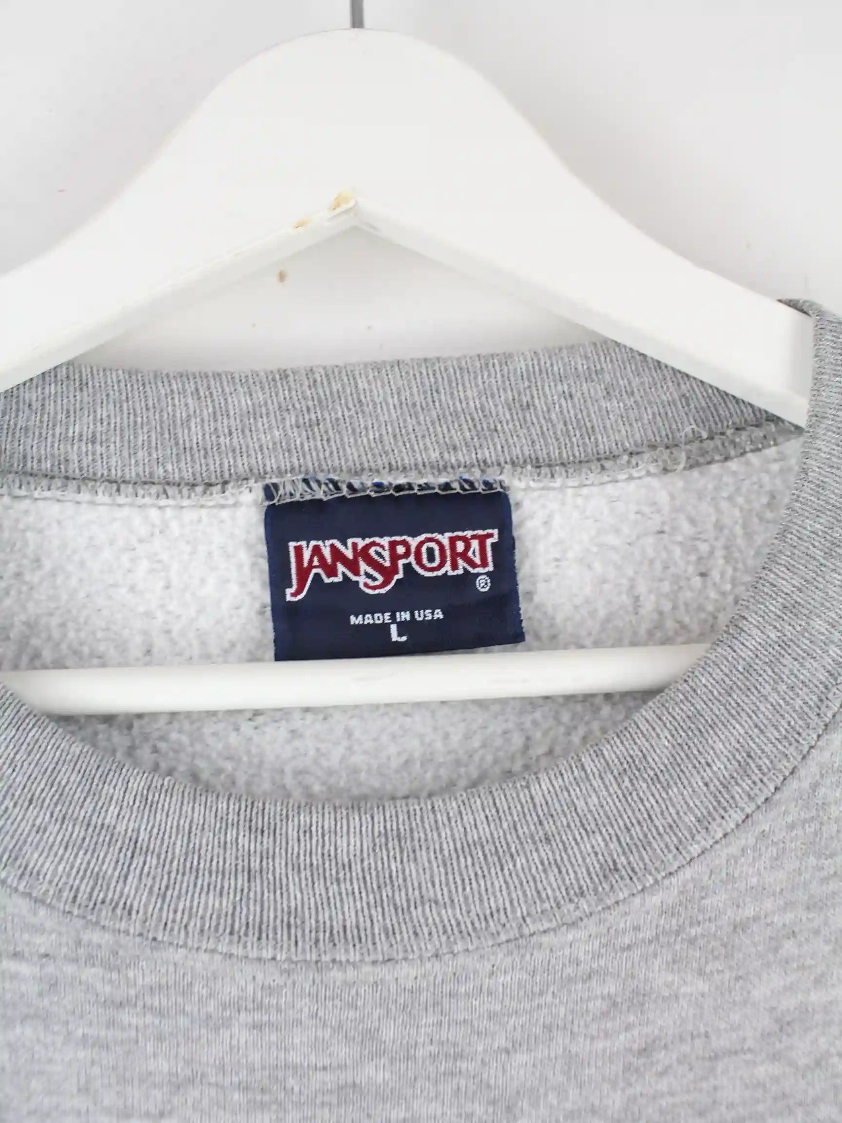 Sweater vom Brand Jansport in Größe L aus den 90'ern. Er ist aus einer Baumwollmischung produziert und in Grau zu bekommen. Mit schönem Football Print.